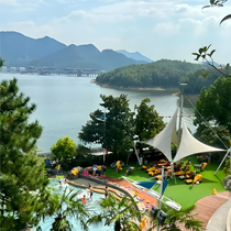茗阳汤泉依山傍水、随山势而建,充分保存了原有的植被和生态系统,是国内顶级的山水园林式温泉度假会议圣地。青山、绿水、蓝天、白云,湖光山色,茂林修竹,置身其内,犹如置身一副美丽的山水国画中。