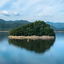 武夷山东溪水库景区位于武夷山市北郊,依托武夷山市最大的半自然湖泊----东溪水库。水库内气候宜人,具有冬暖夏凉的特点,湖内既有挺俊的高山,也有起伏的丘陵,距湖北面2公里处还有千年古刹瑞岩禅寺始建于唐朝。坝址以上集雨面积554平方公里,坝型为混凝土双支墩大头坝,最大坝高54米,坝顶长239.5米,正常蓄水位266.0米,校核洪水位267.2米,坝顶高程268.0米,坝底高程214.0米。