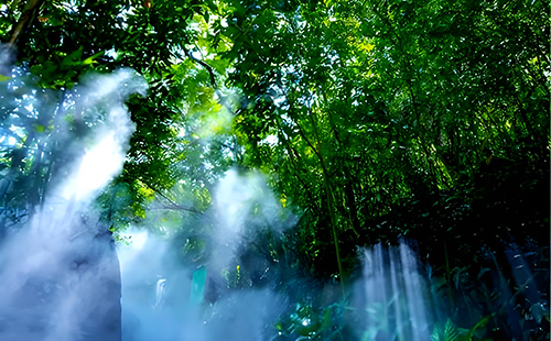 热带雨林谷遮天蔽日,流泉叠瀑倾泻而下,年平均温度24度,踱步雨林中,你能感受阵阵清新凉意。在这里,你能卸下最繁杂的纷扰,穿越雨林栈道,呼吸最清新的空气,畅享休闲的快乐时光。