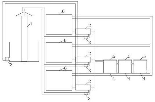 一种多轧机乳化液冷却回收装置,包含有冷却塔(1)、热交换器(2)、水泵(3)、溢流回收槽(4)和防护罩(5);其特征在于:所述的若干个热交换器(2)的循环水出水口和冷却塔(1)的循环水出水口都设置有水泵(3),提高了循环水的流速,使得乳化液在热交换器(2)内有效的进行了冷却。本实用新型通过热交换器(2)将乳化液进行有效的冷却后,在溢流回收槽(4)内进行进一步的冷却、软化、酸碱平衡后循环使用,有效的提高了乳化液的回收利用效率。