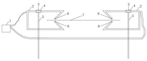 一种分卷机上的简易除油装置,包含有空气增压泵(1)、气管(2)、固定螺栓(3)、轴套(4)、支架(5)和锥形喷嘴(6);所述的轴套(4)通过支架(5)固定在分卷机的机架上;所述的轴套(4)上设置有固定螺栓(3),用于固定气管(2)的位置;其特征在于:所述的气管(2)外端为软管连接在空气增压泵(1)上,内端为硬质管,从轴套(4)的内部穿过并可以左右平移。本实用新型结构简单,成本低廉;通过设置在钢带(7)的上下两侧的锥形喷嘴(6)喷出高压空气来吹走钢带(7)浪边处的剩余轧制乳化液;并通过气管(2)在轴套(4)内的左右平移来适应不同宽度的钢带(7)。
