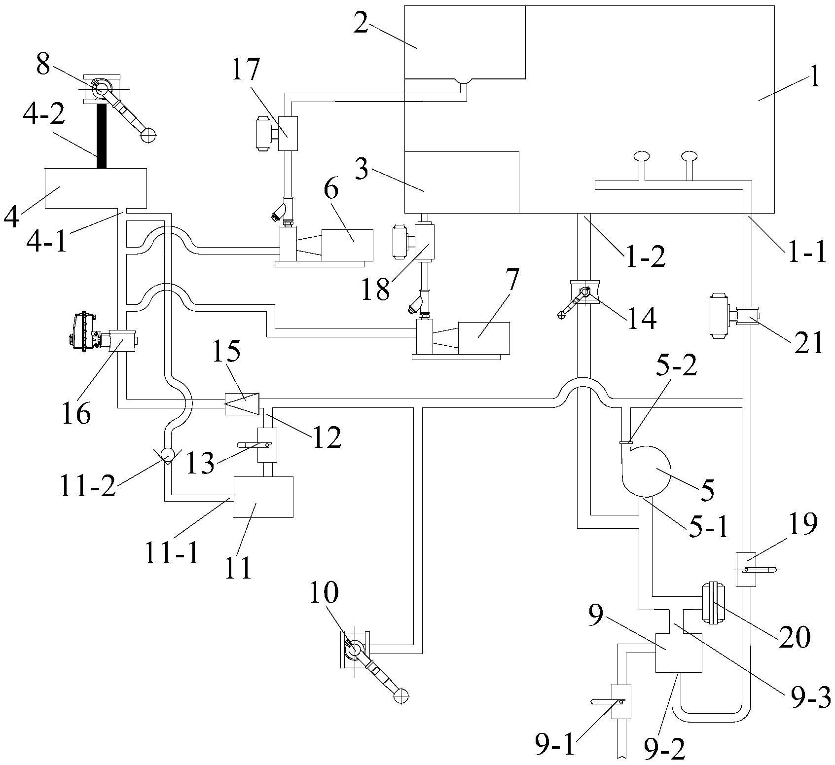 本实用新型公开了一种能连续作业的消防、洗消系统,其包括水罐、泡沫罐、药剂罐、均混器和射流器、所述水罐内的水通过水泵输送到均混器中,所述泡沫罐内的泡沫液通过泡沫泵输送到均混器中,所述药剂罐内的药剂通过药剂泵输送到均混器中,所述均混器的出液口通过球阀A与消防带和喷枪相连接;所述射流器设有外吸口和射流器进水口,所述射流器的出口通过管路与水泵的进液口相连接,所述水泵的出液口通过球阀B与消防带和喷枪相连接。本实用新型所述的消防、洗消系统,不仅具有结构紧凑、占用空间小、具有各种消防和洗消的多种功能,而且能实现消防灭火和洗消作业的连续性和即时性,并能满足各种化学事故的消防和洗消要求,通用性强。