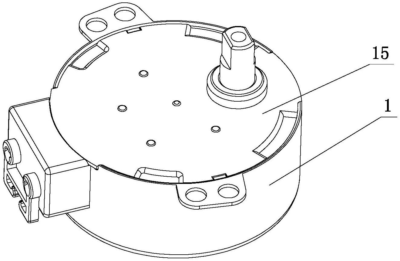一种高效平稳静音爪极式永磁同步电机,包括位于电机上的支架,支架上设有模具冲切内翻成型的极爪,成为上极爪,每个上极爪的宽度、弧度相同;以及/或者,机壳上设有模具冲切内翻成型的极爪,成为下极爪;每个下极爪的宽度、弧度、高度相同,相邻两个极爪之间的夹角为45°,转子齿头上设有弹性件,弹性件在装配过程中压设转子齿头。本实用新型通过上述的极爪设置方式,经过试验,电机效率明显提高,减少无用功损耗,降低电机温升;同时电机运行更平稳,更静音,启动时没有死点;弹性件由平面弹簧与圆柱弹簧相结合,可简化工艺,取消传统弹簧与转子齿头上加垫片工序,有效降低由于转子受力后的轴向窜动异音。