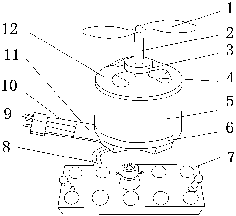本实用新型公开了一种雾化器直流无刷电机,其结构包括扇叶、转轴、固定螺母、定子、转子、后端盖、雾化器、电线、插排、排线、套管、上端盖,扇叶与转轴的顶端机械连接,上端盖上方固定安装有固定螺母且相互垂直,雾化器与后端盖通过电线电连接,本实用新型的有益效果:通过把无刷电机部件添加上扇叶以及雾化器,实现集成化,使用此集成即可为部件装上外观件即可,相较于原先的单独无刷电机部件,可以为生产节省较多时间,提高生产效率。