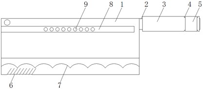 本实用新型公开了一种焊接砍切刀具,包括刀体,所述刀体的一侧焊接有刀柄,所述刀柄的表面固定套接有胶木套管,所述胶木套管的表面开设有环形槽,所述环形槽的内壁活动连接有硫化橡胶圈,所述刀体的底部开设有锯齿槽,所述刀体的正面开设有凹槽,所述刀体的正面和背面均开设有滑槽,且滑槽位于凹槽的正上方,所述滑槽的内壁开设有圆槽,所述刀体靠近刀背位置处的表面活动套接有配重杆,配重杆的下表面开设有通槽,通槽的内壁与刀体的表面滑动连接,通槽对应滑槽的位置处固定连接有导向块。本实用新型通过设置滑槽、配重杆、圆杆和插销,解决了目前常用的焊接砍切刀具的质量大多难以改变,对于切割不同的食物使用不方便的问题。