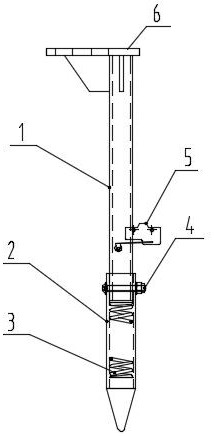 本实用新型涉及一种伸缩式升降引导杆,包括上部固定杆以及竖向滑接在上部固定杆下方的下部活动杆,所述上部固定杆和下部活动杆之间装有将下部活动杆向下推动的弹性下压机构,还包括与上部固定杆固接且位于下部活动杆上升路径上的检测开关,所述下部活动杆包括套在上部固定杆下端的套管以及固接在套管下端的锥形块,所述锥形块的下端为锥形,本实用新型通过设置可伸缩式升降引导杆,可以避免车板上升时因引导杆没有顺利进入边梁上的定位孔而强行顶坏边梁,而且该装置设置了微动开关,当出现意外时可及时让设备停止运行,大大提升了车库设备的安全性。
