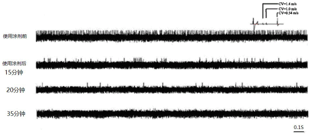 本发明涉及一种缓解痛经的体表外用涂剂,该体表外用涂剂包含以下重量份数的原料成分:二甲基亚砜3‑6重量份,芥子油3‑6重量份,胡椒素0.1‑0.2重量份,无水乙醇85‑95重量份。本发明的体表外用涂剂原料简单易得,不具有对皮肤有损害性质的药物,且使用方法简单、易学;并且对轻度、中度痛经都有很好的缓解疼痛的效果。