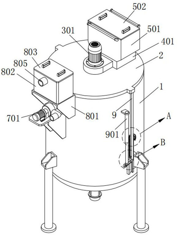 本发明涉及温泉尾水处理装置技术领域,具体的说是一种温泉尾水回收装置,包括储水桶;密封盖,所述储水桶的顶端卡合有密封盖;下料结构,所述密封盖上设有下料结构;除杂结构,所述储水桶上设有除杂结构;污泥泵,所述储水桶的底端安装有污泥泵;启闭结构,通过启闭结构能够实现密封盖的自动开启与关闭,当密封盖开启后其会自动的转动至储水桶的一侧,使其不对搅拌结构进行抵挡,此时直接将搅拌结构从储水桶的内部取出即可,取出后方便对搅拌结构进行全方位的清理,能够减轻其重量,减轻驱动结构的驱动阻力,减小了损耗。