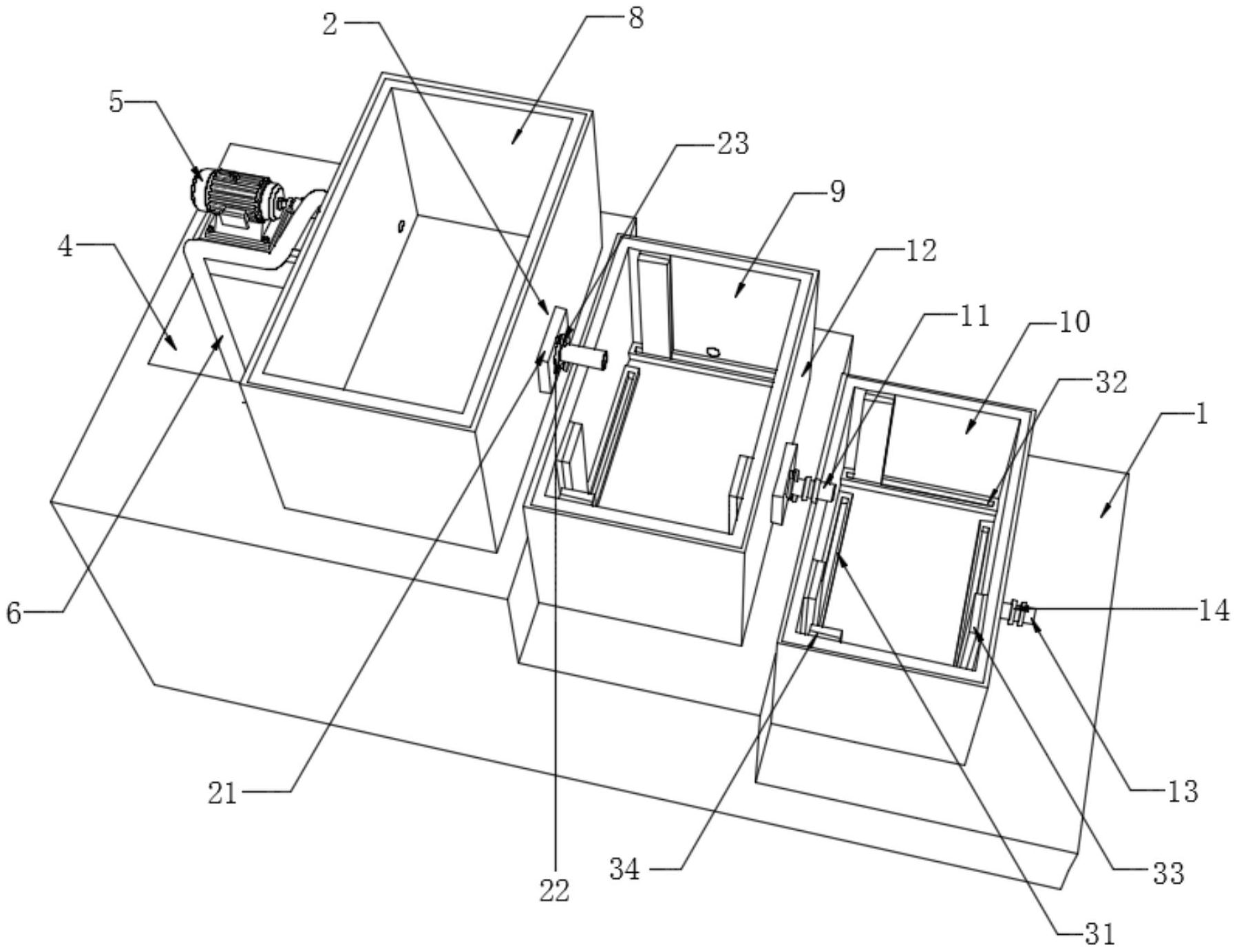 本实用新型公开了多级温度的温泉池,涉及温泉池技术领域,包括支撑物本体,支撑物本体的顶部设有两个密闭组件,支撑物本体的顶端固定连接有水泵,支撑物本体的顶端固定连接有第一温泉池,支撑物本体的顶端固定连接有第二温泉池,支撑物本体的顶端固定连接有第三温泉池,第二温泉池的内侧与第三温泉池的内侧均固定连接有四个刷洗组件,本实用新型的有益效果是:通过滑槽便于了滑板的滑动,便于通过推动刷板对内壁进行刷洗,其中第一温泉池的内部也可设置刷板,那么就便于了对第一温泉池、第二温泉池和第三温泉池内壁的刷洗,便于了后续对第一温泉池、第二温泉池和第三温泉池的大扫除清洗,操作简便。