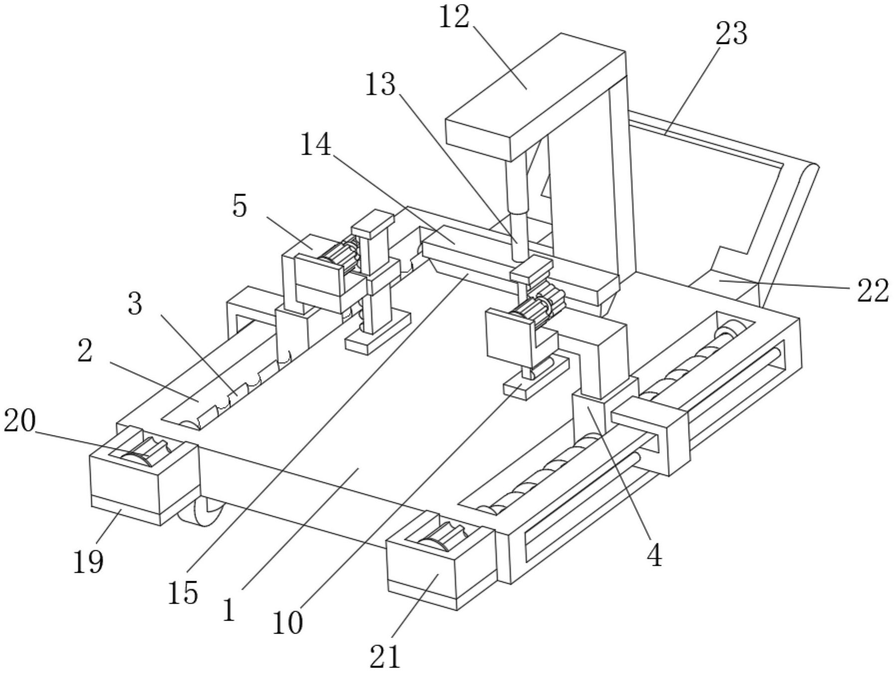 本实用新型公开了一种凝胶贴剂快速封合装置,包括底座,所述底座的顶部开设有螺纹槽,所述螺纹槽的内部通过轴承转动连接有螺纹杆,所述螺纹杆的表面通过螺纹连接有螺纹块,所述螺纹块的顶部固定连接有L形块,所述L形块的表面固定连接有连接架,所述L形块的顶部通过矩形口滑动连接有齿条,所述齿条的表面啮合连接有齿轮,所述连接架的顶部固定连接有第一电机,所述第一电机的输出端通过连轴器与齿轮固定连接。本实用新型通过设置齿条、齿轮、第一电机和夹持块之间的配合,可以取代传统手工对该凝胶贴剂进行固定,避免工作人员因手工固定导致手部受伤,进而避免造成一些列不必要的安全隐患问题发生。
