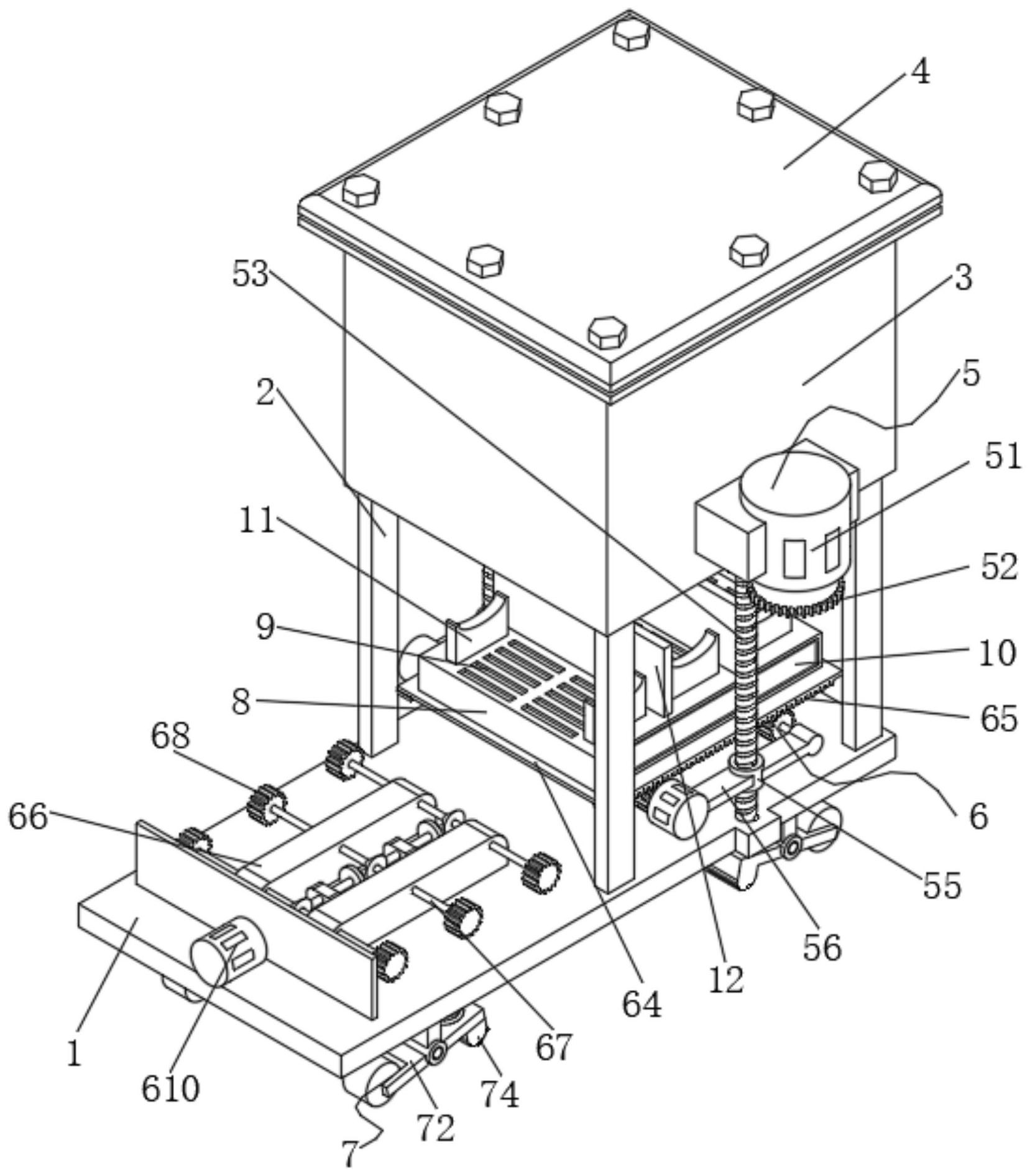 一种银滤芯的烧结方法,包括如下步骤;步骤一,将35目~90目的金属粉末与作为挥发剂的二丙酮醇放入搅拌机内进行常温搅拌混合,搅拌速度为90~120r/mi n,使二者混合的质量比为95~105∶10~15;步骤二,将经步骤一制得的混合物均匀的填入高速钢模具中,进行压实定型,得中空圆柱形的定型滤芯;本发明生产银滤流程比较简洁,提高了生产效率,本发明设置的升降组件,便于把银滤芯模具传送到烧结炉,比较安全,防止烧结炉烫伤工作人员,设置的第一移动组件,可以把第二安装板上的收集盒移出来,便于银滤芯模具的装卸,也便于收集盒内的废渣处理,设置的安装盖,通过螺栓固定,方便拆卸,便于烧结炉内部进行清理,便于设备的正常使用。