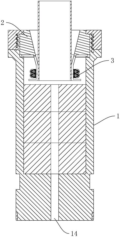 本实用新型公开了一种用于软管灌装封尾机的杯座夹具,属于软管类产品加工机械领域,其技术方案要点包括杯座壳体、软管夹持块和环形双拉簧,所述软管夹持块设置在所述杯座壳体内,所述软管夹持块上设置有与所述杯座壳体内部连通的夹持孔,所述环形双拉簧设置在所述软管夹持块的外侧,所述杯座壳体内于所述软管夹持块的下方设置有至少一个软管垫块,所述杯座壳体内最上侧的软管垫块与所述软管夹持块之间具有缓冲间隙,本实用新型能够提高封尾位置的准确性,节省生产成本。