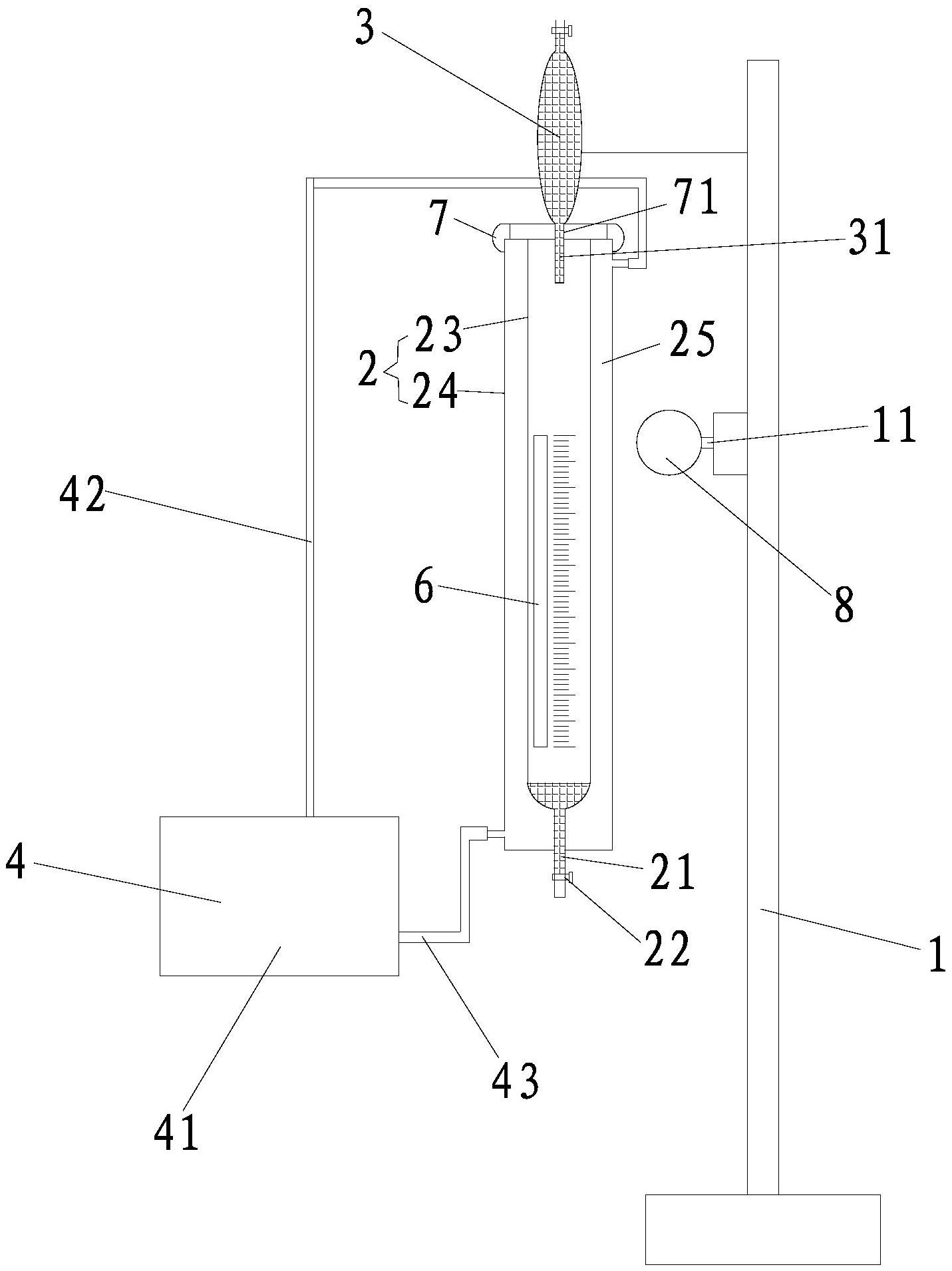 本实用新型公开了一种罗氏泡沫仪,包括架体,安装在架体上的泡沫仪管、设置在泡沫仪管上端并与其连通的滴液管构成,所述泡沫仪管还连通有水浴装置,所述水浴装置分别通过上导管和下导管与泡沫仪管的上部和下部相连通,所述泡沫仪管的底部设置有出液口,该出液口安装有出液开关;所述泡沫仪管包括刻度管和夹套,所述夹套设置于所述刻度管的管壁外面,所述刻度管与所述夹套之间形成夹层,所述泡沫仪管设有感温显色件。与传统技术相比,本实用新型一种罗氏泡沫仪,通过感温显色件可及时、直观地反馈刻度管内的温度。