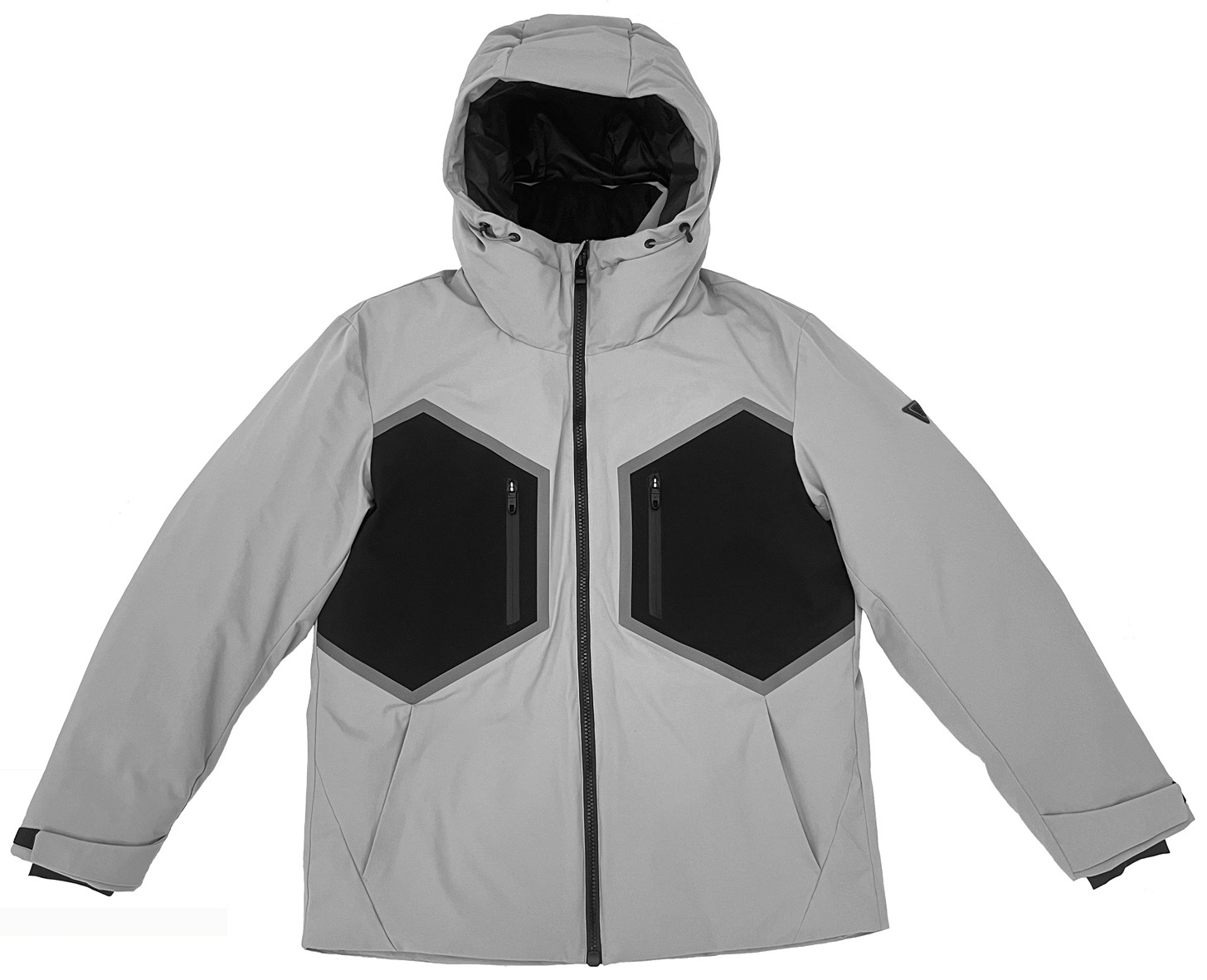 1.本外观设计产品的名称:上衣(连帽羽绒衣1)。2.本外观设计产品的用途:本外观设计产品用于穿着。3.本外观设计产品的设计要点:在于形状与图案的结合。4.最能表明设计要点的图片或照片:主视图。5.本外观设计产品为薄型产品,省略左视图;本外观设计产品为薄型产品,省略右视图;本外观设计产品为薄型产品,省略俯视图;本外观设计产品为薄型产品,省略仰视图。