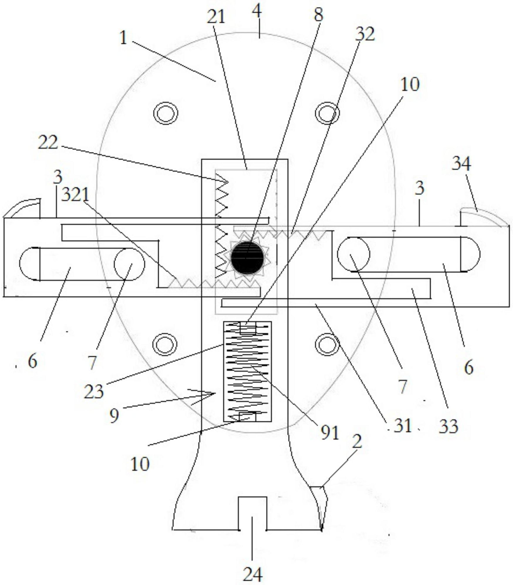 本实用新型公开了车用手机充电重力支架,包括主安装架,所述主安装架内设有托板和两个夹板,主安装架的背板上设有绕线装置,夹板上设有滑孔,主安装架内包括支柱、齿轮和复位结构,所述夹板一端还设有滑动条和滑动齿,左侧和右侧夹板的滑动齿分别与齿轮啮合,左侧夹板的滑动条与右侧夹板的滑动齿贴合,右侧夹板的滑动条与左侧夹板的滑动齿贴合;所述托板包括滑动框,所述滑动框左侧设有一组滑齿,所述滑齿与所述齿轮啮合。本实用新型的有益效果是,采用齿轮结合滑动结构实现联动,结构简单而夹持稳固;可随时对复位结构等部件进行调节,使得使用效果更佳,安装拆卸简单;同时具备数据线收纳功能,能稳固夹持手机且充电方便。