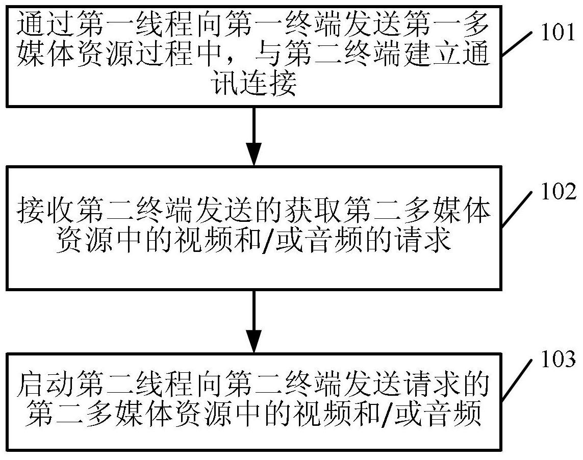 本发明实施例公开了一种提供及获取音视频的方法和装置,其中,提供音视频的方法包括:通过第一线程向第一终端发送第一多媒体资源过程中,与第二终端建立通讯连接;接收所述第二终端发送的获取第二多媒体资源中的视频和/或音频的请求;启动第二线程向所述第二终端发送请求的所述第二多媒体资源中的视频和/或音频。本发明实施例通过第一线程向第一终端发送第一多媒体资源,通过第二线程向第二终端发送第二多媒体资源,可以实现同时为多个终端提供相同或不同的多媒体资源的目的。