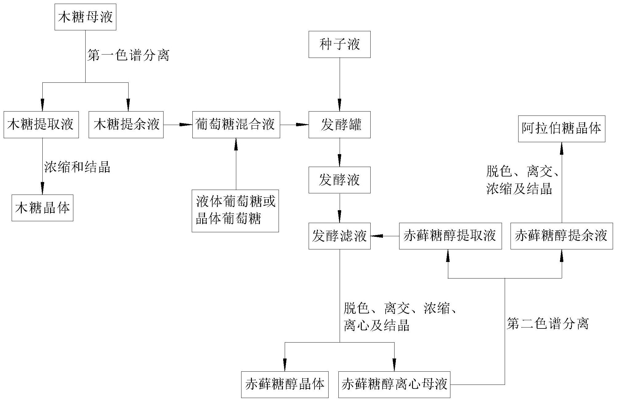 一种木糖母液联产赤藓糖醇和阿拉伯糖的方法