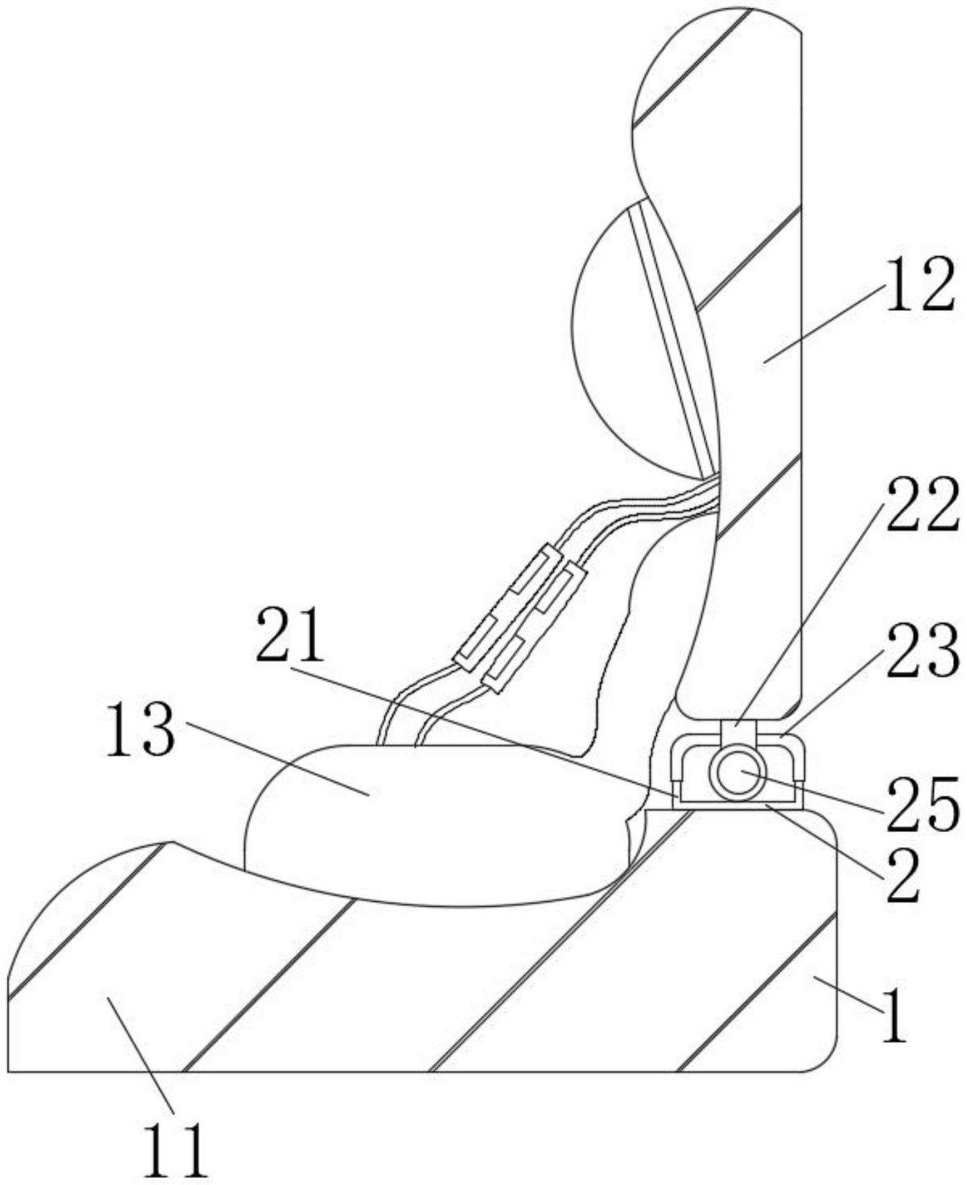 本实用新型涉及儿童座椅翻转装置技术领域,本实用新型公开了儿童汽车安全座椅本体翻转机构,包括儿童座椅装置,所述儿童座椅装置包括坐垫、靠垫和绑带,所述坐垫右侧上端设置有靠垫,所述坐垫上端中间位置固定连接有绑带,所述坐垫靠近靠垫的一侧固定连接有调节机构,所述调节机构包括固定框、插杆、限位套、转杆和转盘,所述固定框上端插设有插杆,所述插杆靠近固定框表面套接有限位套,所述插杆靠近固定框内部侧边固定连接有转杆。本实用新型设置有调节机构,使儿童座椅装置整体能够进行翻转,增加了孩童的使用体验,该装置设置有固定机构,使转盘翻转到指定角度后能够进行固定,有效的保证了调节机构的稳定性。