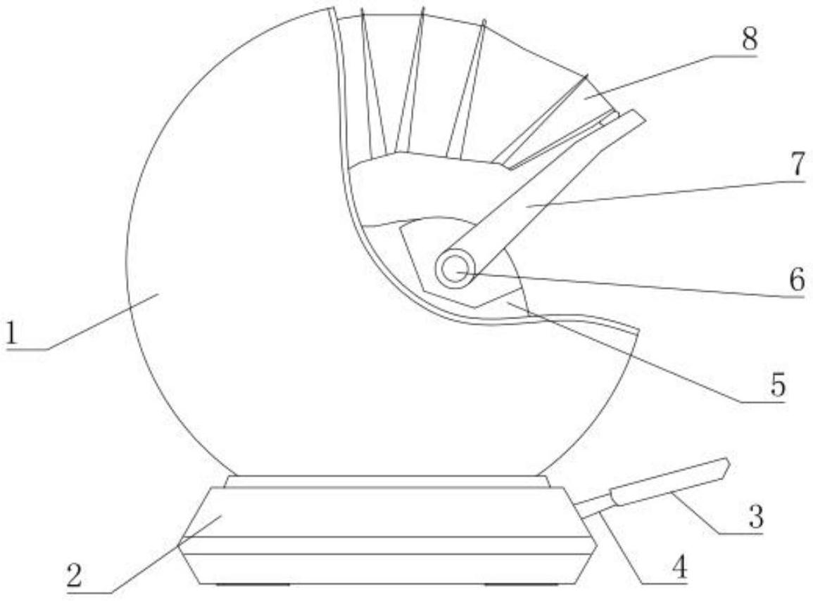本实用新型公开了一种可报警的安全型儿童安全座椅,包括座椅主体和支撑座,座椅主体上端部一侧设有乘坐区,乘坐区下端部设有座板支撑件,乘坐区上端部设有折叠式遮阳布,乘坐区两侧设有防护侧板,防护侧板与座椅主体侧壁固定连接,防护侧板上连接有防护束板,防护束板置于乘坐区一侧并呈半环形放置,其两端通过松紧螺栓与防护侧板侧壁铰接;与传统报警式儿童安全座椅有所不同的是,座椅内设置有乘坐区,乘坐区外连接有环形设置的防护束板,能在乘坐时,防止儿童跌落,同时防护束板能在转动中与位于座椅上的折叠式遮阳布进行配合,使乘坐区形成一个较为封闭的区域,进而达到遮风挡阳的作用,安全可靠。