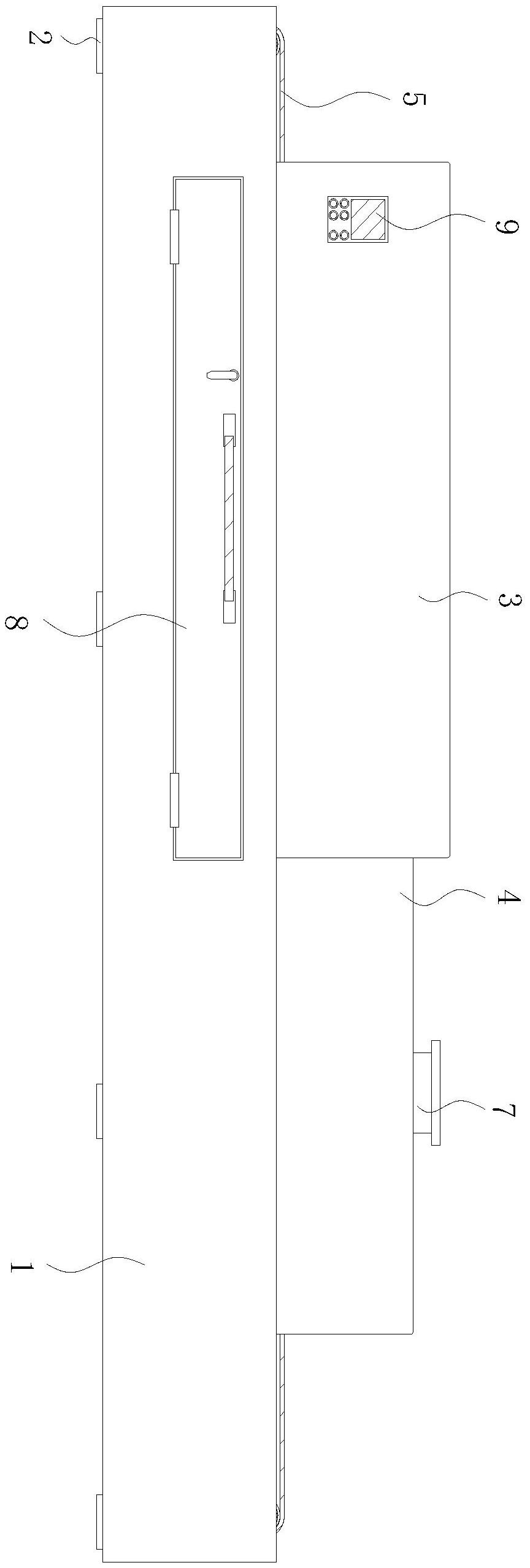 本实用新型涉及花茶加工设备技术领域,提供一种玫瑰花茶加工用清洗烘干装置,旨在解决现有的花茶清洗烘干加工为分体式设备,加工效率较低,且清洗和烘干之间存在转运过程,容易导致污染,影响制备出的玫瑰花茶品质的问题,包括呈条形的传输机箱和传输机箱下端安装的多个支撑垫脚,传输机箱的内腔上部水平转动安装有传输网眼带,传输机箱上端沿着传输网眼带的传输方向依次设有清洗室和烘干室,清洗室内设有清洗机构,烘干室内设有烘干机构;清洗机构包括设置在清洗室内腔中并呈倒梯形结构的金属编织带。本实用新型尤其适用于玫瑰花茶加工的清洗烘干,具有较高的社会使用价值和应用前景。