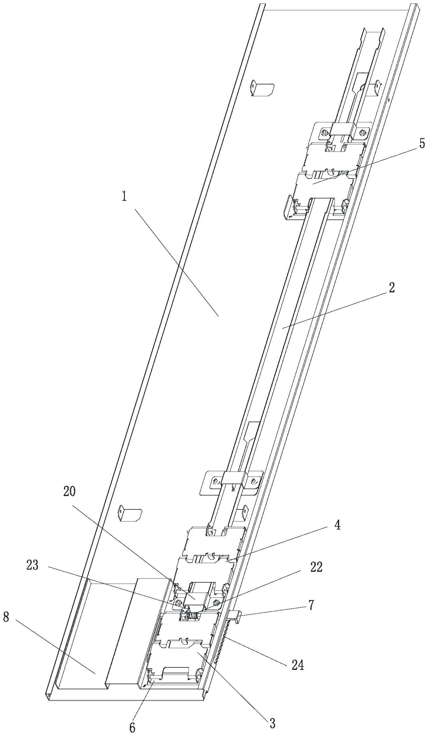 本实用新型公开了一种自动售货机料道宽度调节装置,具体涉及到一种可以对自动售货机的料道宽度进行调节的装置。一种自动售货机料道宽度调节装置,包括调节板,调节板上设有滑板,滑板上连接有第一铰链组件、第二铰链组件和第三铰链组件,第一铰链组件通过固定座固定在调节板下方,第二铰链组件靠近第一铰链组件,中间连接有调节杆,第三铰链组件固定在调节板上方,调节杆对侧设有档位板,档位板上设有与调节杆相适配的通孔。本实用新型的可调节范围大,可根据大多数常用商品的宽度进行调节。操作简单,只需对调节杆的位置调节就可以实现储物料道宽度的改变。寿命长、可靠性高,采用了多组铰链组件,能够承受较大压力。