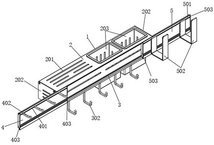 本实用新型公开了一种多功能厨房收纳架,包括收纳架主体,收纳架主体的一侧固定安装有框架,框架包括刀架铝板和两个筷子杯筒,框架的一侧固定安装有导轨,导轨的一侧滑动连接有第一滑板;集成刀架铝板、筷子杯筒、挂钩、砧板架钩等功能一体化,达到一物多用效果,有效利用厨房空间进行收纳,提高收纳效率;采用左右伸缩结构,进行收纳分区,使用时拉伸滑板,进行收纳放置,不使用时收拢滑板,减小占用面积,有效节约空间;上挂钩和砧板架钩分别能够在第一滑道和第二滑道内左右滑动,可以根据实际使用情况,调整悬挂位置,增加使用范围;采用扁条安装上墙,框架与扁条挂扣连接,取下清洗方便,保证产品的使用安全和卫生。