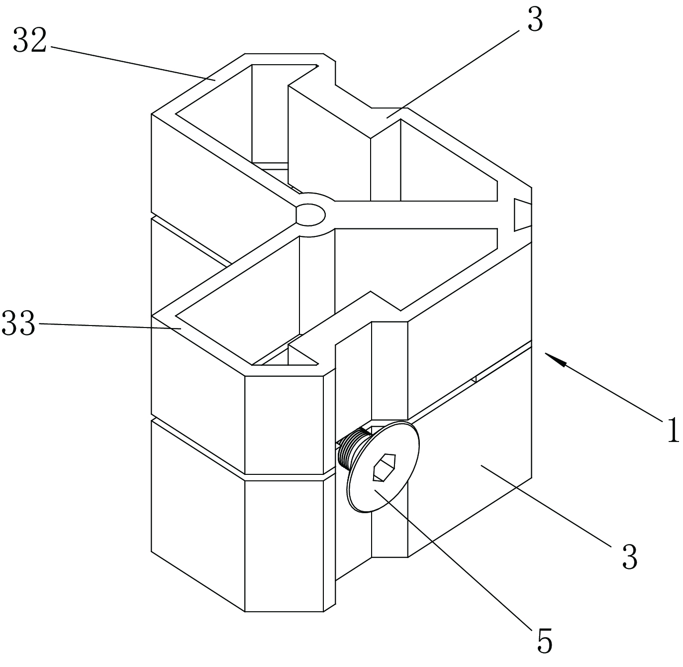 本实用新型公开了一种铝合金型材角码。包括角码型材主体,角码型材主体包括有至少两个角码型材单元及用于将相邻的两个角码型材单元组装成一体的角码连接件;至少一个角码型材单元上具有与紧固件相适配的安装位,至少一个角码型材单元上具有与紧固件相配合的倾斜壁,当紧固件逐步往角码型材单元内侧方向动作时,依靠倾斜壁促使对应的角码型材单元逐步外扩以使角码型材主体与门架型材之间越锁越紧。本实用新型采用双层角码型材设计,通过角码连接件初步连接,主体部分塞入型材后,转紧紧固件时,角码型材不断在门架型材内部胀开,从而将门架型材越锁越紧,该结构可将门架斗角微调,微调后角度更为精准,整体结构简单,安装、拆卸方便,牢固美观。
