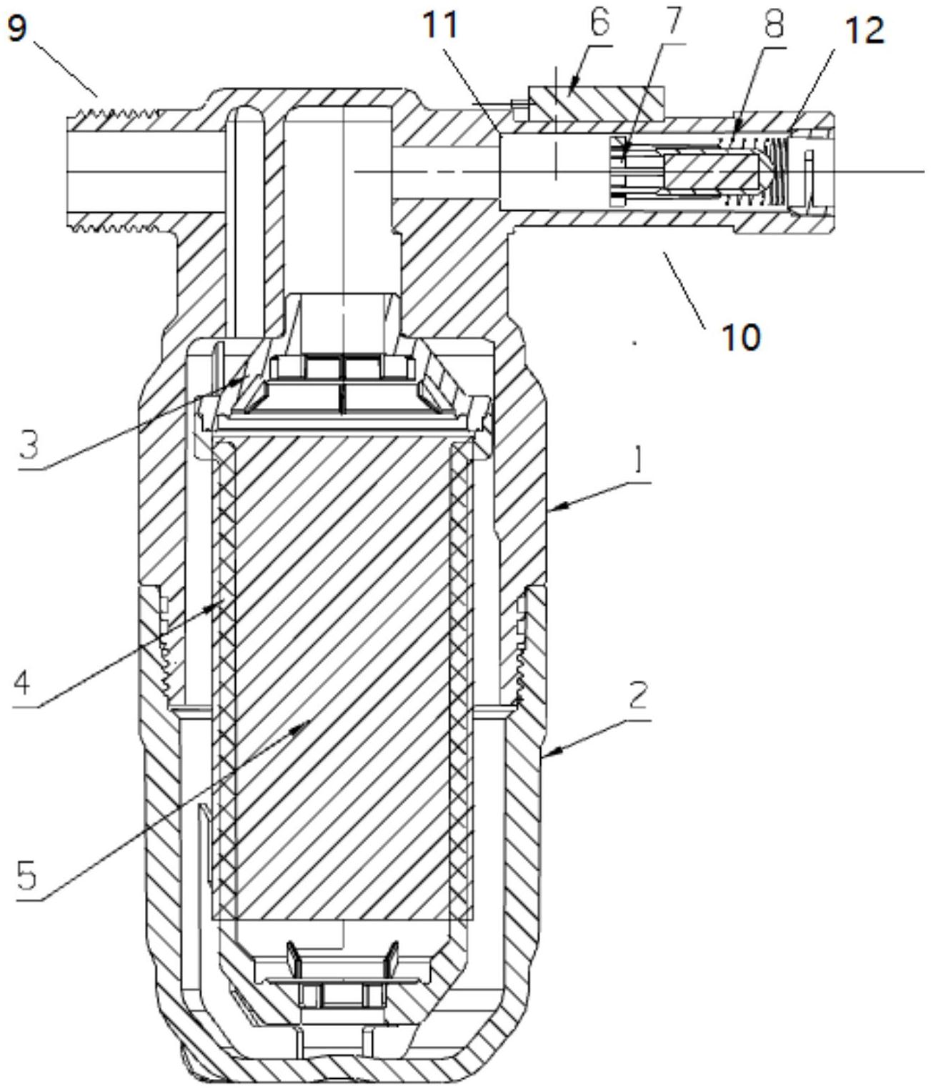 本实用新型涉及一种可精准计量液体流量的滤瓶装置,包括滤瓶组件和滤芯组件;所述滤瓶组件包括滤瓶上盖和滤瓶下盖,滤瓶上盖的上部包括位于一侧的进液端和另一侧的出液端;所述滤芯组件设置在滤瓶组件内,包括滤芯上盖、滤芯下盖4和填充物;所述出液端设置流量计组件,所述流量计组件包括干簧片、磁石和弹簧;所述出液端外固定设置干簧片,所述出液端内滑动设置磁石,磁石移位时能够控制干簧片的开闭;所述出液端内固定设置用以使磁石复位的弹簧。本实用新型能精确计算出用户实际用水量,并能根据滤芯的实际使用状况提示用户及时更换,避免由于未能及时更换滤芯而造成的不必要的的损失。