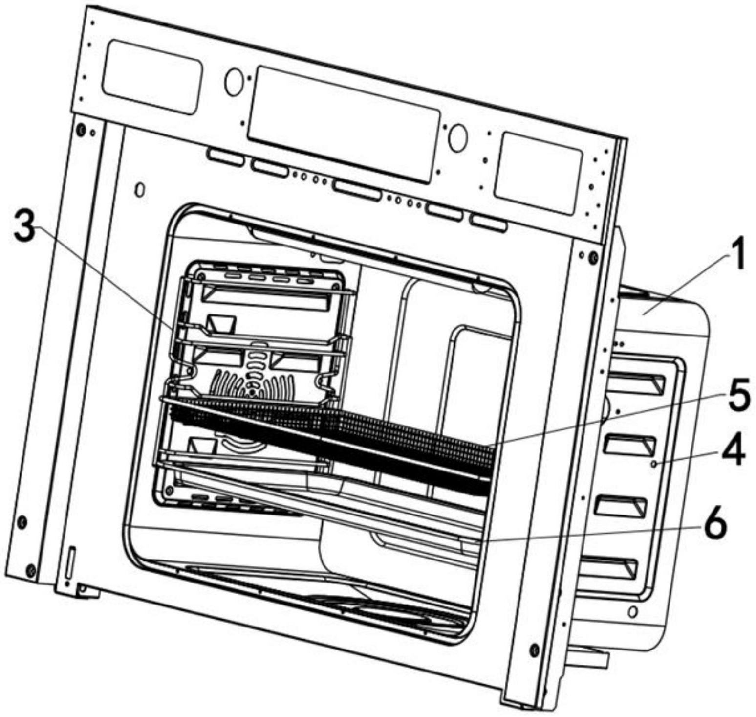 本实用新型涉及厨房电器领域,包括蒸烤箱款集成灶、嵌入式蒸烤箱、台式蒸烤箱、消毒柜等,特指一种内胆搁架结构,包括内胆,内胆两侧内壁上设置有若干长短不一的压筋凸槽,其中一侧的内胆内壁的压筋凸槽之间设置有若干通风孔,通风孔呈十字分布;搁架,内胆内壁两侧各设置有一副搁架,搁架的左右两侧设置有限位槽,搁架通过限位槽挂设在内胆内壁的固定件上;固定件可通过手动拆卸。采用上述方案后,增加了上述电器中内胆搁架方式的多样性,适用性更广。