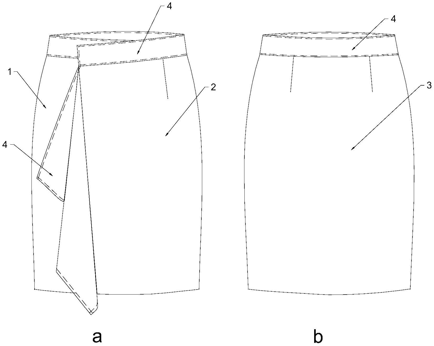本实用新型公开了服装技术领域内的一种半裙,包括本体、裙头及丝巾,本体包括左片、右片和后片,左片、右片分别连接于后片的两侧,后片、左片、右片上端分别连接于裙头,右片位于左片外侧,丝巾一端可拆卸连接于右片内侧。该半裙搭配有丝巾,丝巾上绘制有图案,丝巾位于右片和左片之间且可从右片侧边漏出,丝巾部分外露的半裙可以提升穿着女性的知性优雅感。