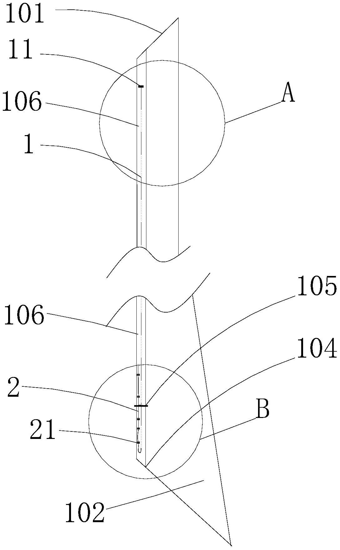 本实用新型涉及领带技术领域,特别是一种带隐藏式松紧线的领带。该领带包括领带本体,所述领带本体内侧包括拼接部,所述拼接部设有车缝线、松紧线和若干限位线圈;所述车缝线的一端固定在所述拼接部靠近所述呔尾的一端,以车缝的方式沿所述拼接部向所述呔头方向延伸,延伸至所述锁线和所述开叉处之间;所述松紧线的一端与所述车缝线远离所述呔尾的一端连接,所述松紧线的另一端向所述呔尾方向延伸,形成自由端;所述限位线圈与所述拼接部固定连接,所述松紧线的自由端穿过所述限位线圈。通过在领带内侧,将车缝线的尾端留一段作为松紧线,并通过限位线圈将松紧线固定。避免了车缝线断线和松紧线的外露,从而避免了领带的非预期形变。