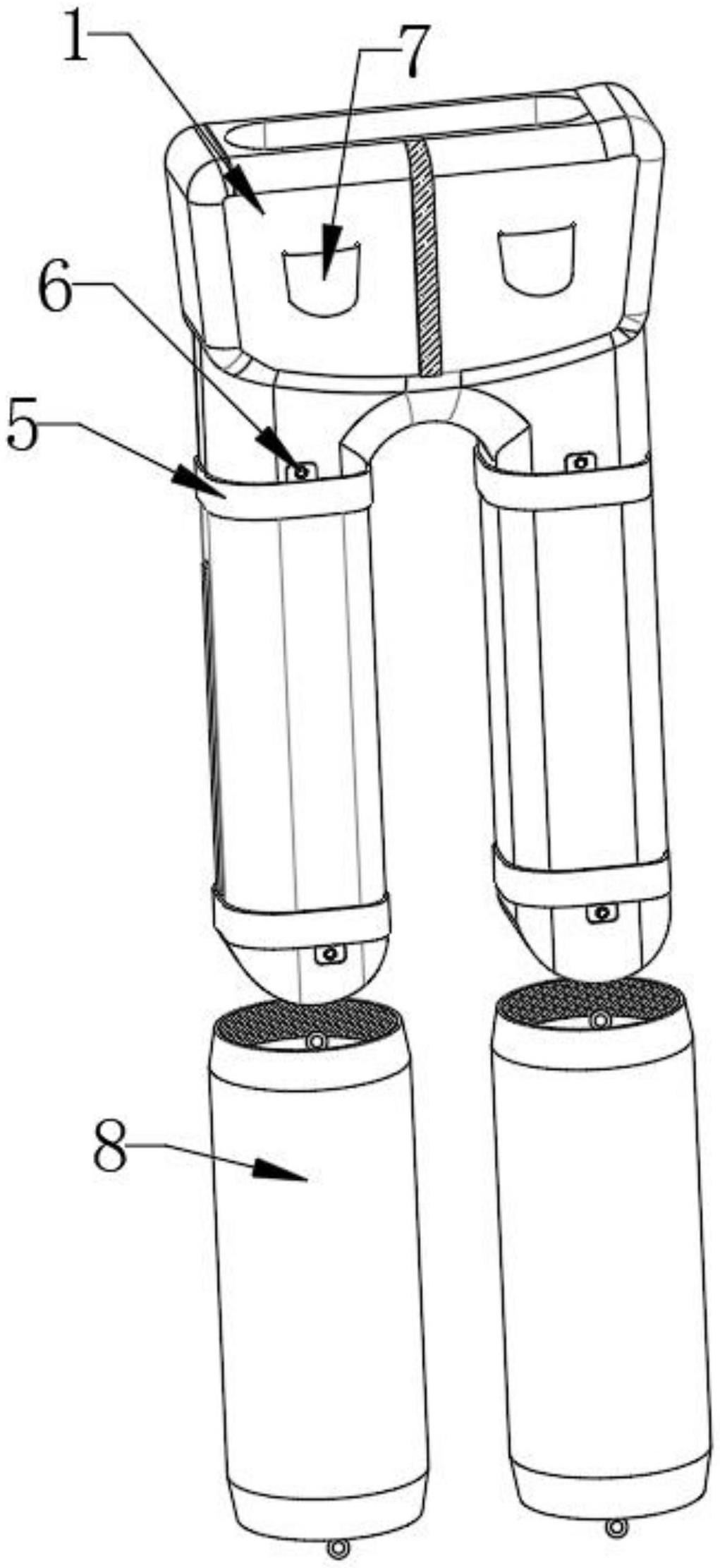 本实用新型涉及衣物技术领域,且公开了一种穿戴厚度可调节的儿童棉裤,包括棉裤体和棉裤体底部两侧连接的棉裤腿,所述棉裤腿的外侧套接有保暖内胆体,所述棉裤腿的表面设置有魔术外贴,且魔术外贴的表面固定有卡槽板,且魔术内贴的一侧设置有卡槽板卡接的卡扣。本实用新型对传统的厚重棉裤进行改进,使携带有较厚内胆的保暖内胆体通过粘结的方式与棉裤腿进行结合,在温度较低的环境下,可使保暖内胆体套在棉裤腿的外侧起到很好的保暖效果,当处于温度较高的环境下时,可利用魔术内贴与魔术外贴的粘结直接将保暖内胆体取下,从而减少负重,同时实现裤子厚度的快速调节,降低监护人的照顾难度,更加省力省心。