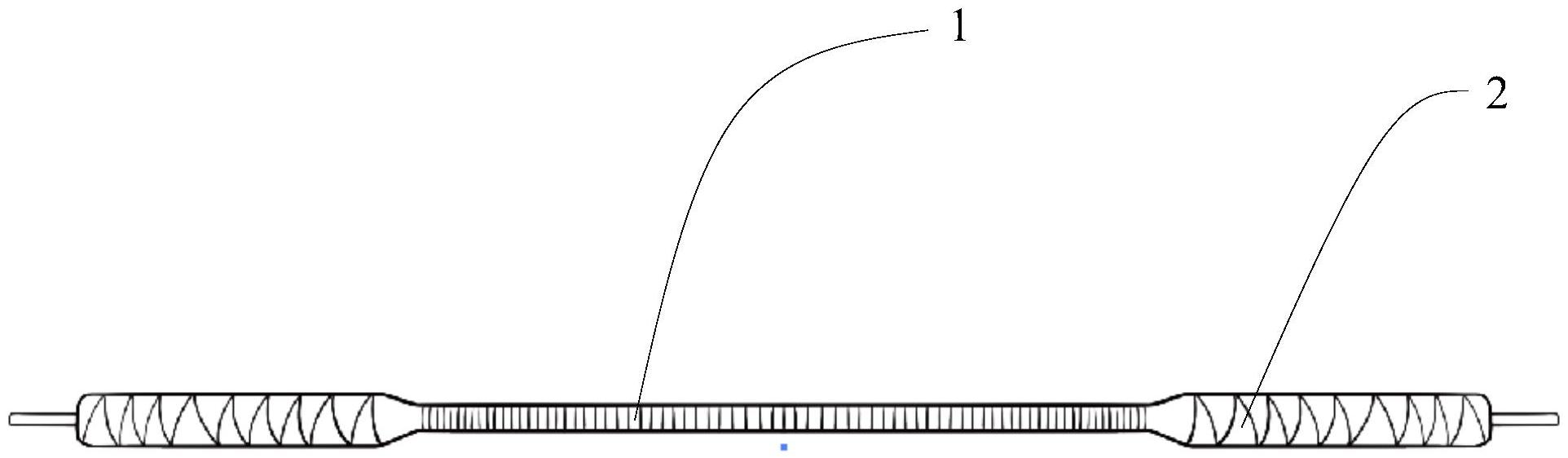 本实用新型提供一种间段式弹性鞋带,包括中间部分和两端部分,中间部分和两端部分一体设置成型,中间部分的延伸率5%‑50%,两端部分的延伸率50%~150%,中间部分的横截面半径范围为0.5mm‑1.5mm,两端部分的横截面半径范围为3mm‑10mm。本实用新型的优势在于:鞋带中间部位弹性小、较细可以更好的紧固鞋面中部,包覆性较好;鞋带两端部分弹力大,便于使用者在入脚穿着的时候,方便打开鞋口,更轻松入脚。同时两端部分较粗,鞋带间摩擦力较强,叠加弹力较大的优势,便于使用者在交叉系住的时候,鞋带弹力收缩、更易系紧,有更好的止滑力、不容易松脱。