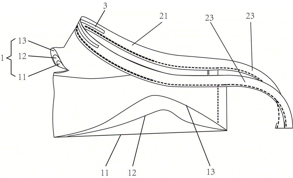 本实用新型提供了一种防护口罩,包括:口罩本体,具有由内至外依次层叠设置的吸湿层、过滤层和阻水层,所述吸湿层、所述过滤层和所述阻水层均由从上至下依次缝合相连的上密封结构、中间结构和下密封结构组成,所述上密封结构与所述中间结构的连接处形成有能与人脸贴合的上弧形凸部,且所述下密封结构与所述中间结构的连接处形成有能与人脸贴合的下弧形凸部;连接带,具有连接在所述口罩本体的上端外缘的上连接带、连接在所述口罩本体的下端外缘的下连接带、以及两个耳带,所述耳带的两端分别与位于所述口罩本体的同一侧的所述上连接带的端部、所述下连接带的端部相连。本实用新型的防护口罩,能够与人脸紧密贴合,其结构简单且密封性好。