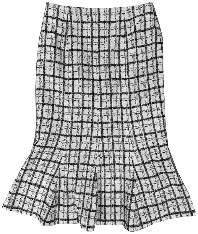 1.本外观设计产品的名称:半裙(黑白格羊绒鱼尾)。2.本外观设计产品的用途:服装。3.本外观设计产品的设计要点:在于形状、图案与色彩的结合。4.最能表明设计要点的图片或照片:主视图。5.请求保护的外观设计包含色彩。6.本外观设计产品为薄型产品,省略左视图、右视图、俯视图、仰视图、立体图。