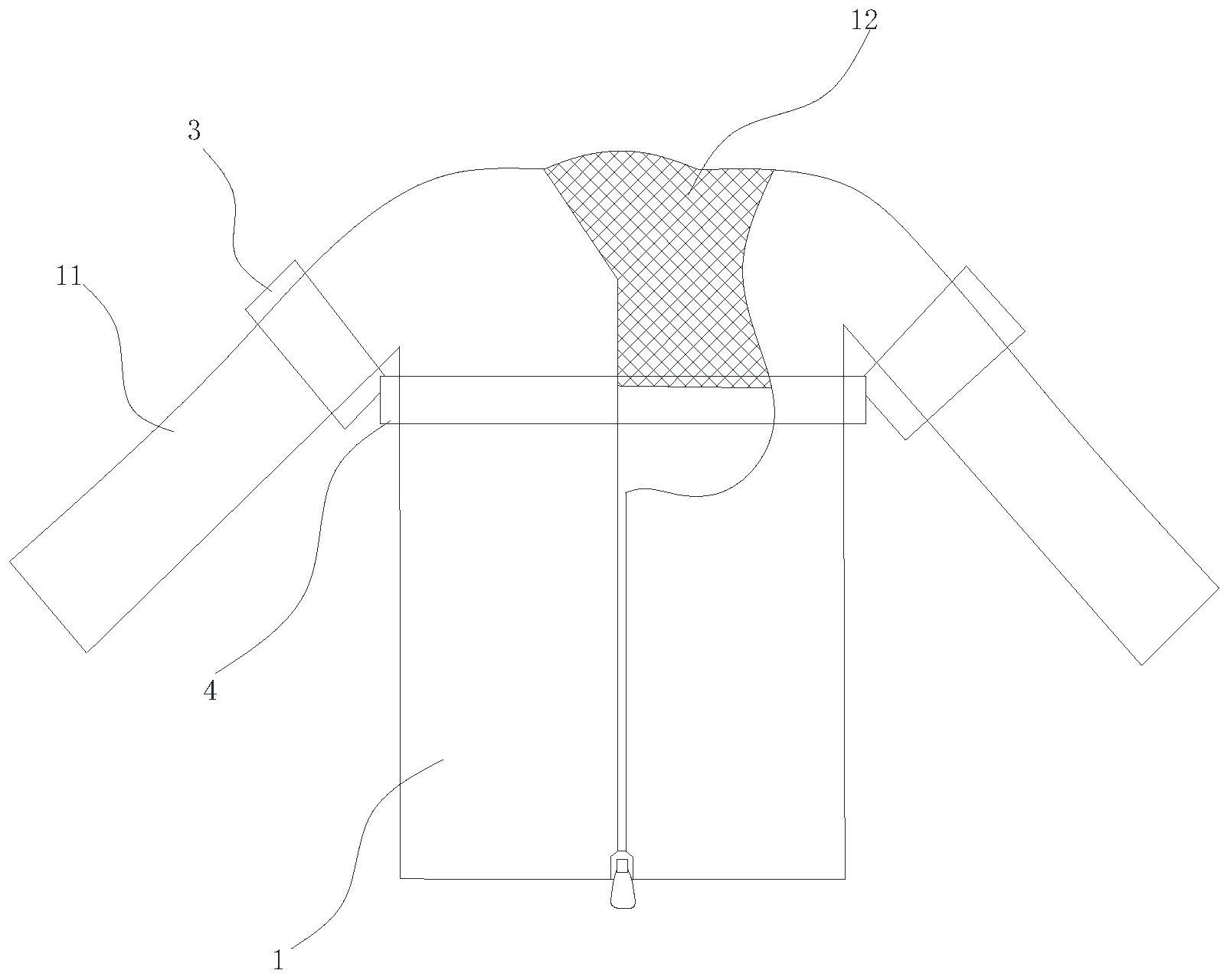 本实用新型公开了一种防水的军训服,包括上衣和裤子,其特征在于:所述上衣两个袖子上分别套设有衣袖防雨套,衣袖防雨套的一端固定于袖子上靠近腋下的地方,衣袖防雨套的另一端沿着袖子卷起并进行可拆卸固定连接,上衣上位于腋下以下套设有上衣防雨套,上衣防雨套侧部沿着上衣拉链位置进行分开,在上衣防雨套的分开处两侧分别设置有相互连接的子扣和母扣,上衣防雨套的上端高度连接于上衣上,上衣防雨套的下端沿着上衣防雨套卷起并进行可拆卸固定连接。本实用新型提供了一种防水的军训服,能够根据需要进行转换,避免在炎热夏天出现过热现象,同时,在雨天还能具有防水效果。