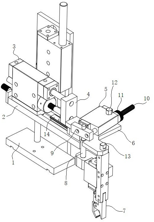 本实用新型公开了一种中帮机二爪旋转机构,包括支架,并在支架上设有第一油缸,所述第一油缸通过设有的第一支点活动销转动安装在支架上,并在支架设有用于夹持鞋帮的夹爪,所述夹爪通过设有的第二支点活动销转动安装在支架上,且夹爪与第一油缸之间通过设有的联动轴,实现动力传递。由于夹爪在第一油缸的推动下以所述第二支点活动销为旋转中心轴逆时针转动,使得位于鞋帮的内侧面的布料被拽平,解决了鞋帮内侧布料因褶皱,导致整个鞋子质量不达标的问题,由于第一油缸带动联动轴转动时,第一油缸本身以第一支点活动销为旋转中心轴逆时针转动,使得夹爪的转动更加平稳,夹爪的转动角度以及力度完全不会导致布料被撕裂。