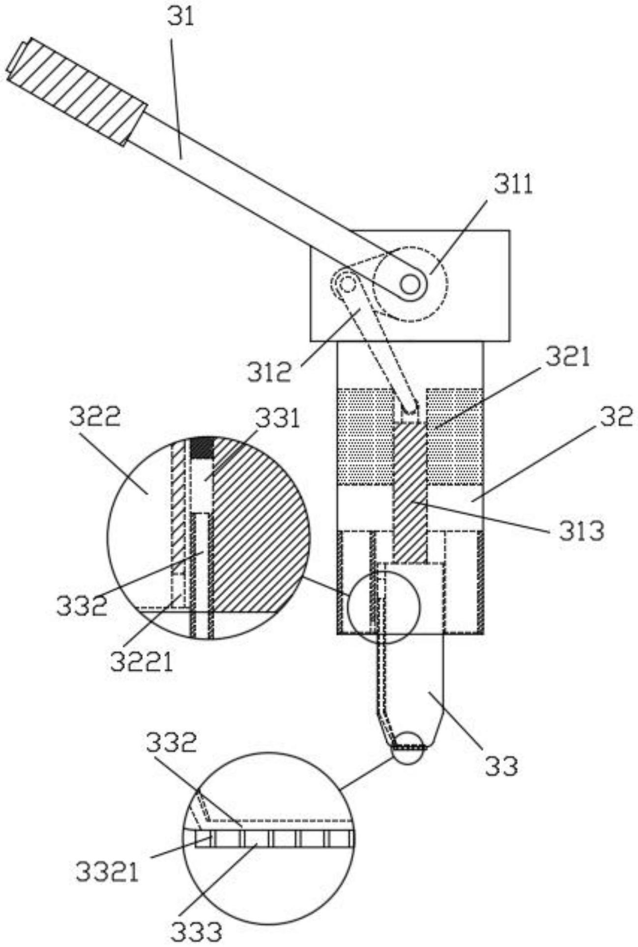 本实用新型公开了一种休闲鞋生产打码机,包括底座、支撑台、打印部、支撑柱,支撑台与支撑柱均设于与底座上,打印部安装支撑台上且位于支撑柱正上方;打印部包括摇杆、壳体、打印头,摇杆转动安装于壳体的侧面,打印头活动设于壳体下端,摇杆通过一连接件与打印头相连,以摆动摇杆通过连接件控制打印头上下伸缩,使用者可通过按压摇杆带动打印头下移挤压鞋子,在鞋子表面形成凹凸条纹以及具有识别性的颜色条纹,也可基于墨水的蔓延,通过将鞋子抵在打印头表面将条纹的图案印刷在鞋子表面,如此也可在鞋子表面形成识别效果,提高鞋子的被识别性。