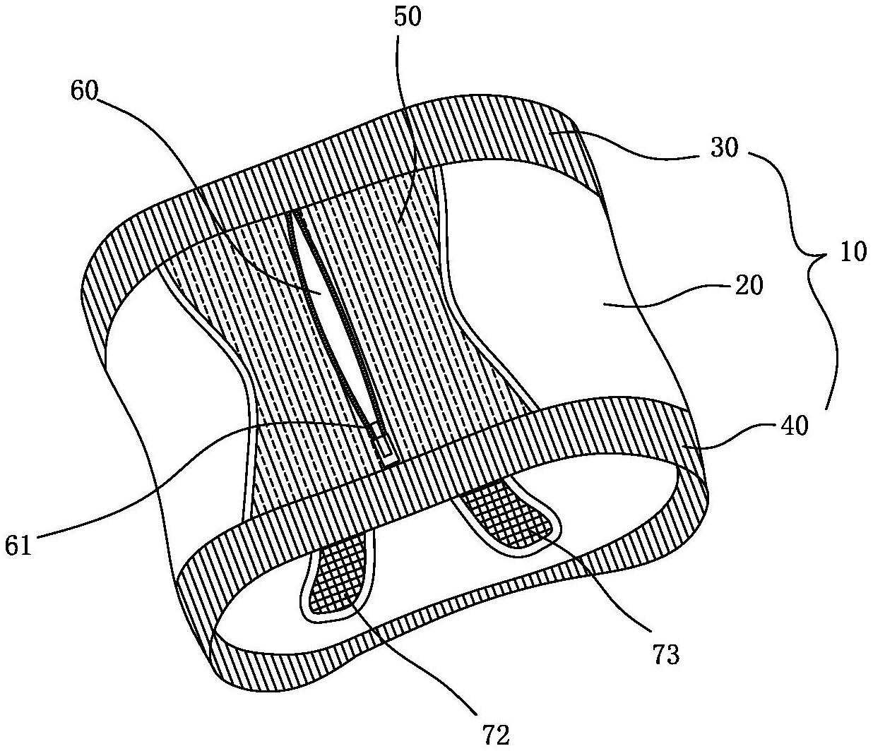 本实用新型涉及一种新型束腰带。它包括束腰带本体,所述束腰带本体包括主带体、上松紧带和下松紧带;所述主带体的前侧区域还设有平铺设置的约束片,所述约束片的边缘与主带体固定连接,使两者之间形成有夹层;所述约束片在竖直方向的伸展性为大于水平方向上的伸展性;所述约束片上设有竖直分布且可开合的切口。约束片位于腹部前侧,约束片横向不可拉伸的效果使得本实用新型在腹部区域可提供更大的约束力,这样不仅可以提升腹部的塑身效果,还有助于将腹部的赘肉转移至胸部;约束片在竖直方向上的伸缩性使得穿着状态下腰部可以自由弯曲伸展,减轻束缚感。同时使用者还可通过该切口向夹层内装填暖宝宝等其他用于腹部的产品。