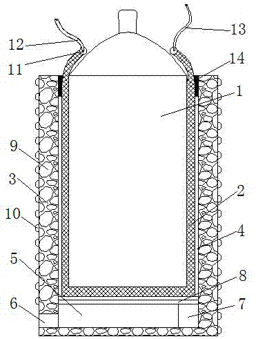 本实用新型公开了一种可加热奶瓶保温套,包括奶瓶和内衬套,内衬套套接在奶瓶的外部,内衬套的外部套装有保温套,保温套和内衬套通过设置在保温套的上端的粘扣带连接,保温套的内壁上设置有电热膜,保温套的内底面设置有蓄电池和温控开关,蓄电池和温控开关电连接,温控开关和电热膜电连接,蓄电池的上表面设置有隔温板,本可加热奶瓶保温套设置有内衬套,方便拆卸清洗,设置的电热膜可对奶瓶加热,使婴儿能随时喝到热奶,保温套的套体内部设置的真空腔有良好的隔热效果,保温性好,温控开关可使奶瓶温度维持在固定范围内,使用便捷,防滑钉有效避免了婴幼儿手持奶瓶时滑落造成的伤害,系带可将内衬套牢固地套设在奶瓶上,避免了保温套的脱落。