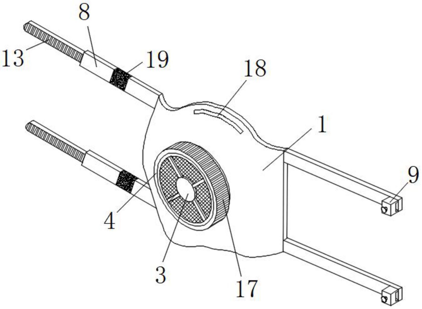 本实用新型涉及口罩技术领域,且公开了一种方便穿戴的工业防颗粒物口罩,包括口罩本体,所述口罩本体的表面固定套接有固定筒,所述固定筒的内部滑动套接有过滤器,所述固定筒的表面螺纹连接有转动筒,所述转动筒的内壁开设有三角槽;本实用新型通过拧动转动筒,转动筒转动使转动筒横向移动,转动筒横向移动使三角槽横向移动使卡接杆脱离与过滤器卡接的方式,能够达到更换过滤器的目的,提高了口罩的实用性,降低了使用成本,节约了资源,本实用新型通过将齿板放入固定块中,调节杆在第二弹簧的作用下与齿板卡接的方式,能够达到便于佩戴的目的,提高了口罩的适用范围和口罩的舒适性。
