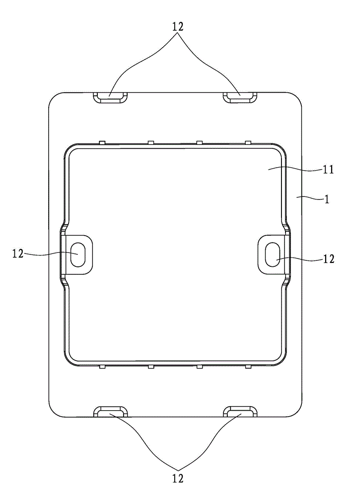 本实用新型公开一种通用支架结构,包括一方形架体,在方形架体中间挖设一内正方形,内正方形左右两侧的架体上分别设置一锁孔,该两锁孔轴对称设置;内正方形上下两侧的架体上分别设置两卡扣。本实用新型安装步骤较少,安装方便,降低使用成本。