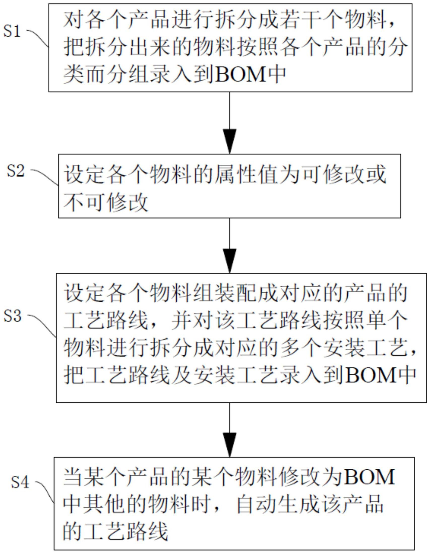 本发明公开了一种工艺BOM自动维护方法,包括如下步骤,对各个产品进行拆分成若干个物料,把拆分出来的物料按照各个产品的分类而分组录入到BOM中;设定各个物料的属性值为可修改或不可修改;设定各个物料组装配成对应的产品的工艺路线,并对该工艺路线按照单个物料进行拆分成对应的多个安装工艺,把工艺路线及安装工艺录入到BOM中;当某个产品的某个物料修改为BOM中其他的物料时,自动生成该产品的工艺路线。本发明能够有效的避免通过人力对工艺路线进行时发生的人为错误,此外,能够有效的提高车间生产的效率。
