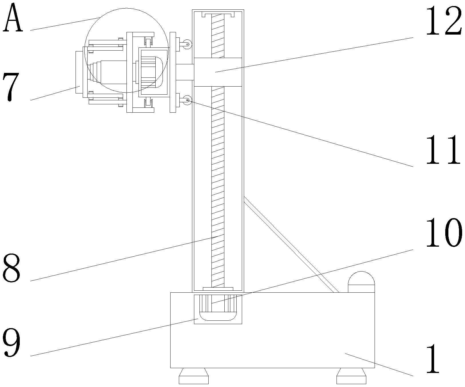 本实用新型公开了一种LED灯仔贴装高度补正装置,包括底座,底座正面左侧的上端开设有电机槽,电机槽顶部的中端固定连接有第一伺服电机,底座上表面的左侧固定连接有立柱,第一伺服电机的输出端贯穿立柱内腔底部的中端并固定连接有螺杆,螺杆外表面的上端螺纹连接有滑块,滑块左侧的中端固定连接有第一固定板,第一固定板左侧的中端固定连接有电机盒,第二伺服电机的输出端贯穿电机盒左侧的中端并固定连接有第二固定板。本实用新型设置了第一限位环、第二固定杆、第二限位环和第一固定杆,达到了稳定性好的目的,解决了现有的LED灯仔贴装高度补正装置稳定性差,导致其工作时易产生晃动,影响补正精度的问题。