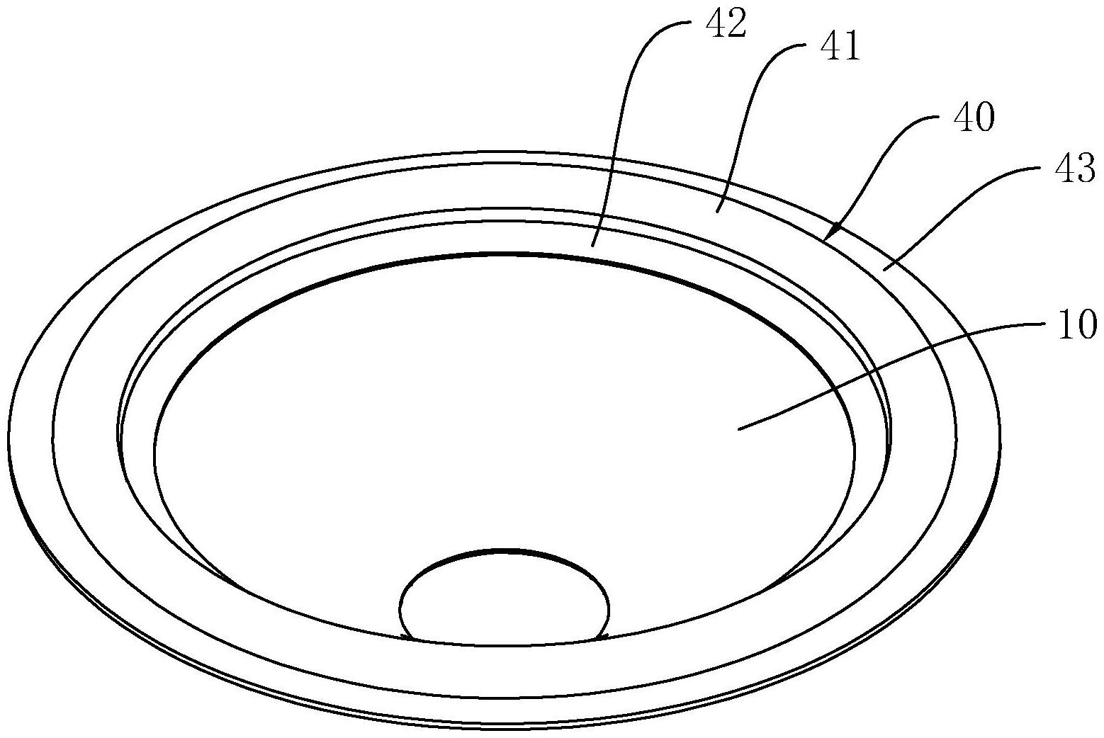 本实用新型公开了一种镂空振膜结构,并公开了具有镂空振膜结构的扬声器,其中镂空振膜结构包括:第一薄膜层、第二薄膜层以及镂空板层,镂空板层与第一薄膜层以及第二薄膜层贴合,镂空板层呈喇叭状,镂空板层的上端边缘设置有翻折部,翻折部的一端与镂空板层的上边缘连接,翻折部向下倾斜设置,第一薄膜层以及第二薄膜层的上边缘贴合翻折部的两侧面。呈现喇叭状的镂空板层结构具有结构稳定、刚度高、低泊松比、高声速传导、低失真的特性,可适用于大口径、大表面积的低音音膜,可减少和抑制音膜的失真和音染,实现扬声器的保真与还原。此外,镂空板层设置有的翻折部,以便于提供结构支撑点的同时还可改变振膜的质量分布和共振特性。