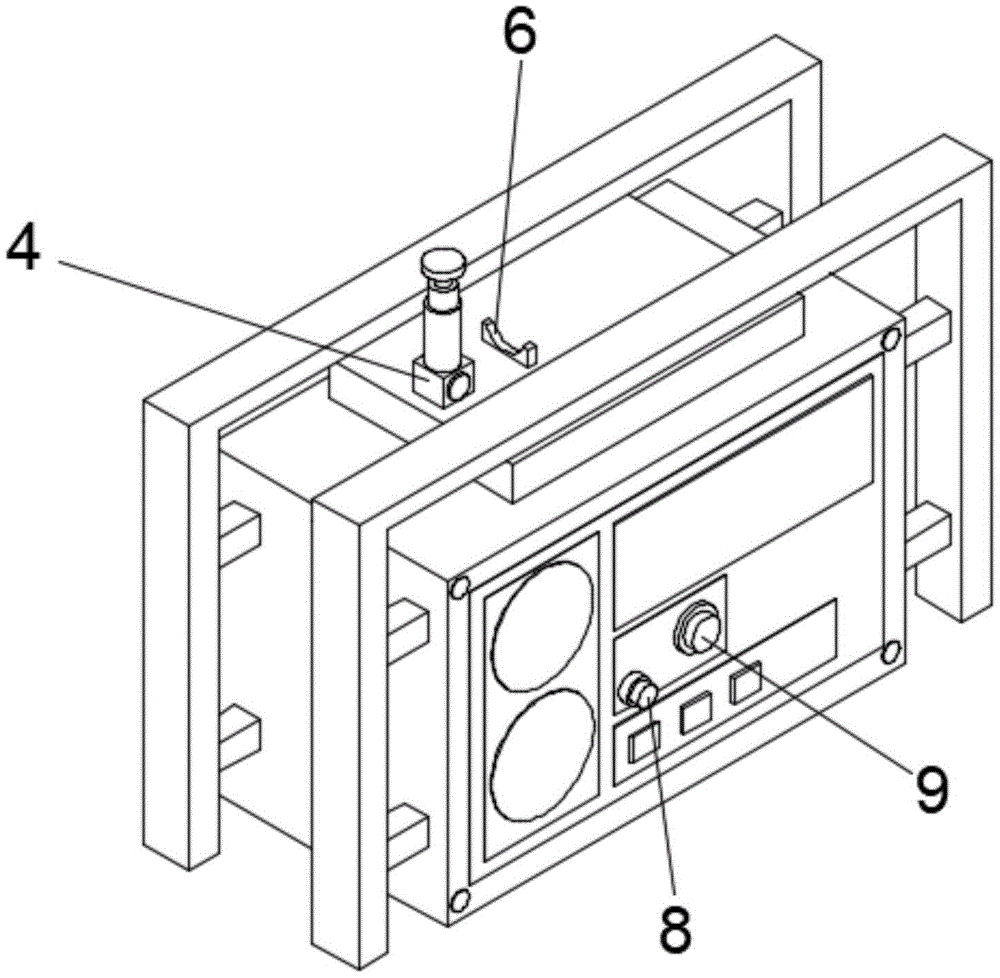 本实用新型提供一种具有太阳能电池板的收音机用天线,涉及太阳能领域。包括收音机壳体,所述收音机壳体的顶部固定安装有太阳能支架,所述太阳能支架的表面固定安装有太阳能电池板。该具有太阳能电池板的收音机用天线,通过设置防滑套、连接杆、支撑柱和手提带的配合,防摔架围绕收音机的机身,在不慎将收音机掉落在地面时,可以起到较好的缓冲作用,能够将收音机保护起来,机身与防摔架延伸形成固定,避免了收音机受撞而破坏,延长使用寿命,手提带方便收音机的提拿,通过设置调频控制按钮,可加强收音机接收信号的灵敏度,方便用户选择自己喜欢的频道,确保了用户的正常使用,根据人们的需求调节各种音效,使演奏效果更佳。