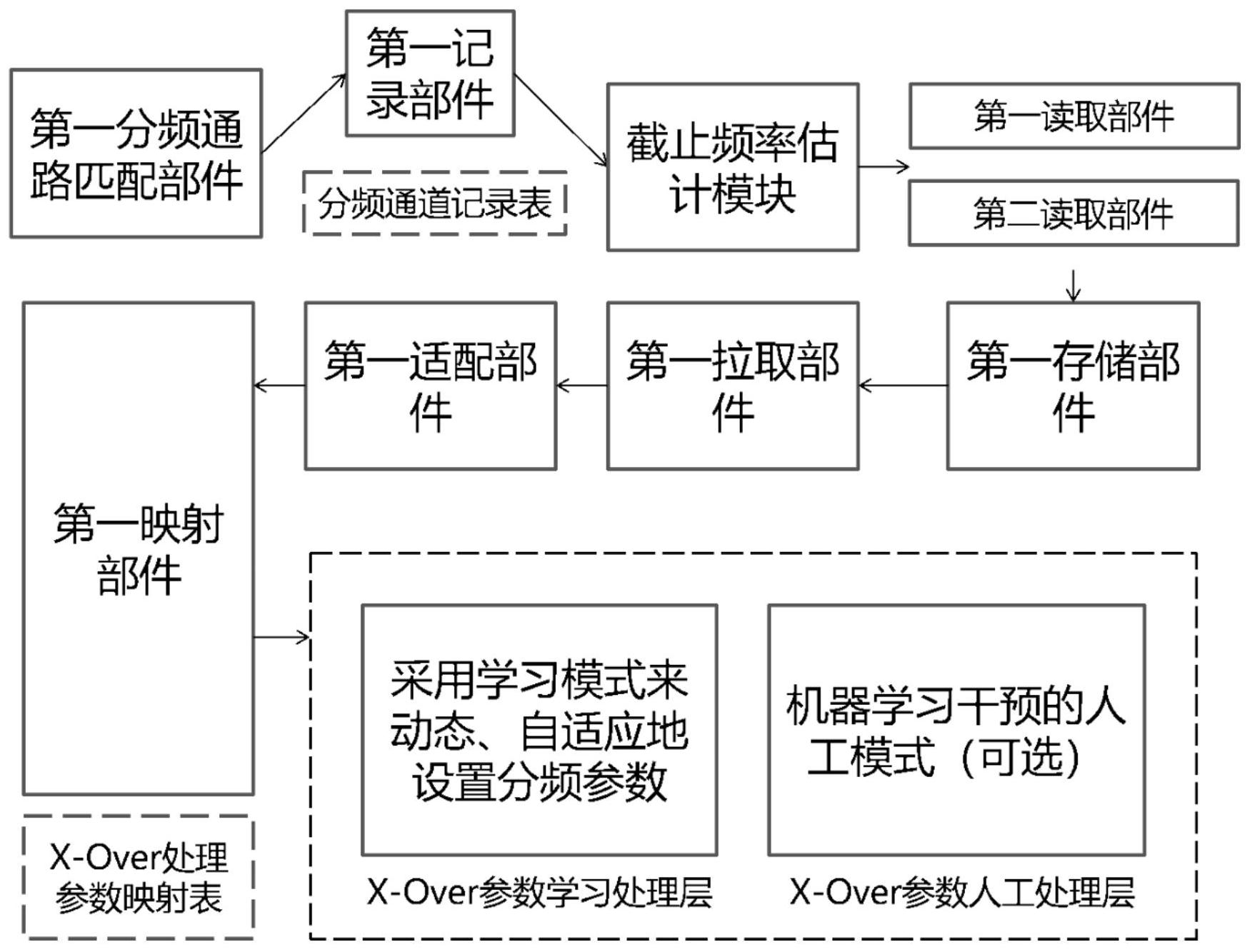 本发明公开一种Dante数字音频处理方法与系统,在Dante数字音频处理系统中预置X‑Over处理所需信号组及其参量,通过截止频率重估层重新估计动态自适应截止频率定义参数,通过截止频率映射层用以重新估计的截止频率定义参数并进行存储和映射,通过X‑Over参数学习处理层、X‑Over参数人工处理层进行学习模式或人工叠加机器学习干预模式下参数处理,并给出Dante数字音频处理方法及其X‑Over处理过程的系统和设置界面设计,从而解决现有技术中无法定义适配输入信号特性及X‑Over处理特性的截止频率参数、基于信号差异分组、动态自适应设置X‑Over处理参数形成有效映射及无法得到符合系统稳定并具有人工修正倾向的X‑Over参数等技术问题。
