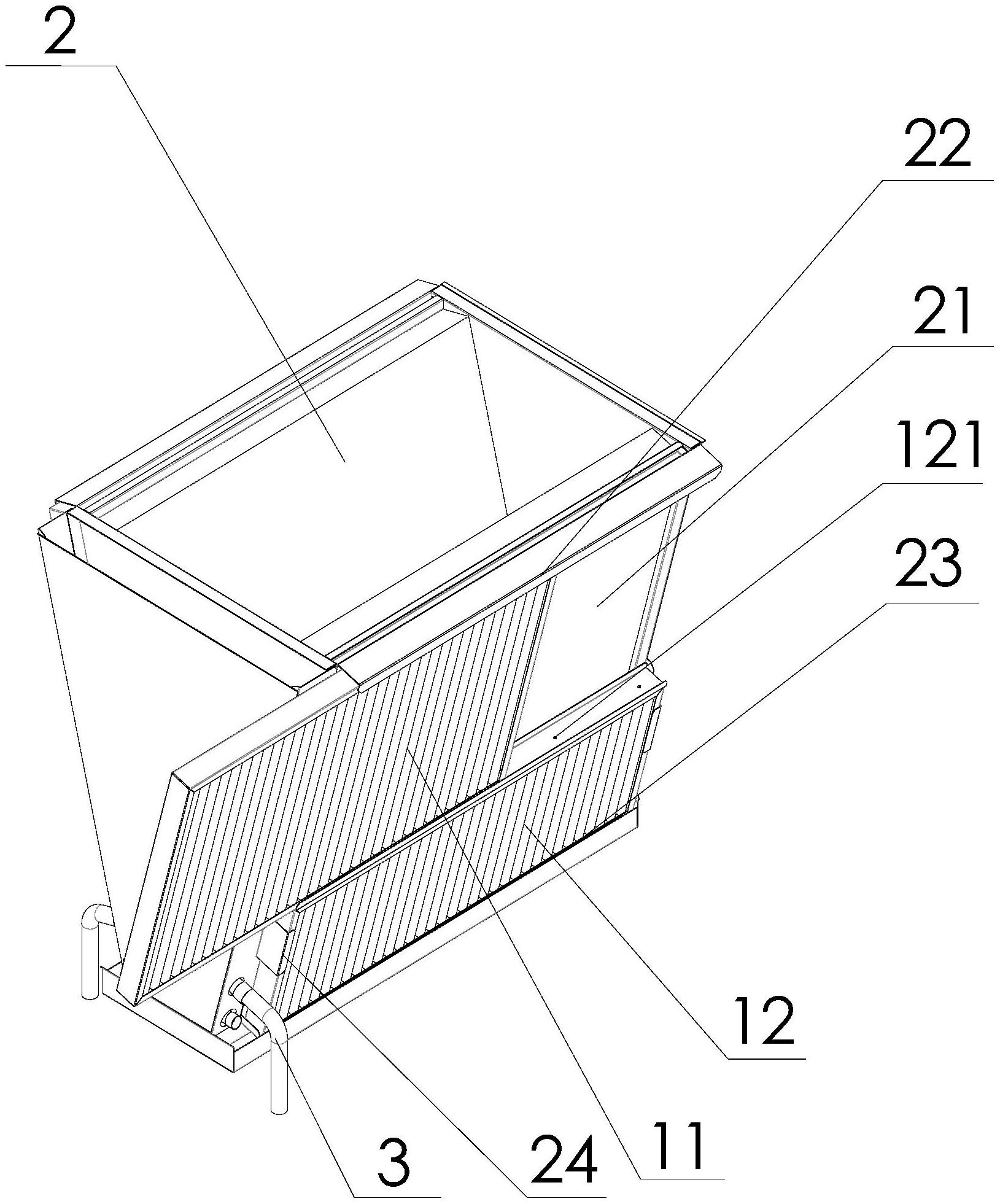 本实用新型公开了一种机房用空调过滤网结构,包括一过滤网组件,所述过滤网组件包括相互滑动连接的第一过滤网和第二过滤网;以及一支撑所述过滤网组件的支架,所述支架上设置一开口,所述开口上方设置有一与所述第一过滤网远离所述第二过滤网的一端滑动连接的第一导轨,所述开口的下方设置有一与所述第一导轨平行、且与所述第二过滤网远离所述第一过滤网的一端卡接的凹槽,所述开口的左侧和右侧均设置有同时与所述第二过滤网滑动连接的滑动组件。将过滤网组件分成第一过滤网和第二过滤网,第一过滤网和第二过滤网都滑动连接在支架的开口上,使得第一过滤网和第二过滤网拆装过程中占用较小的空间,并且还能增强过滤网组件安装的稳定性。