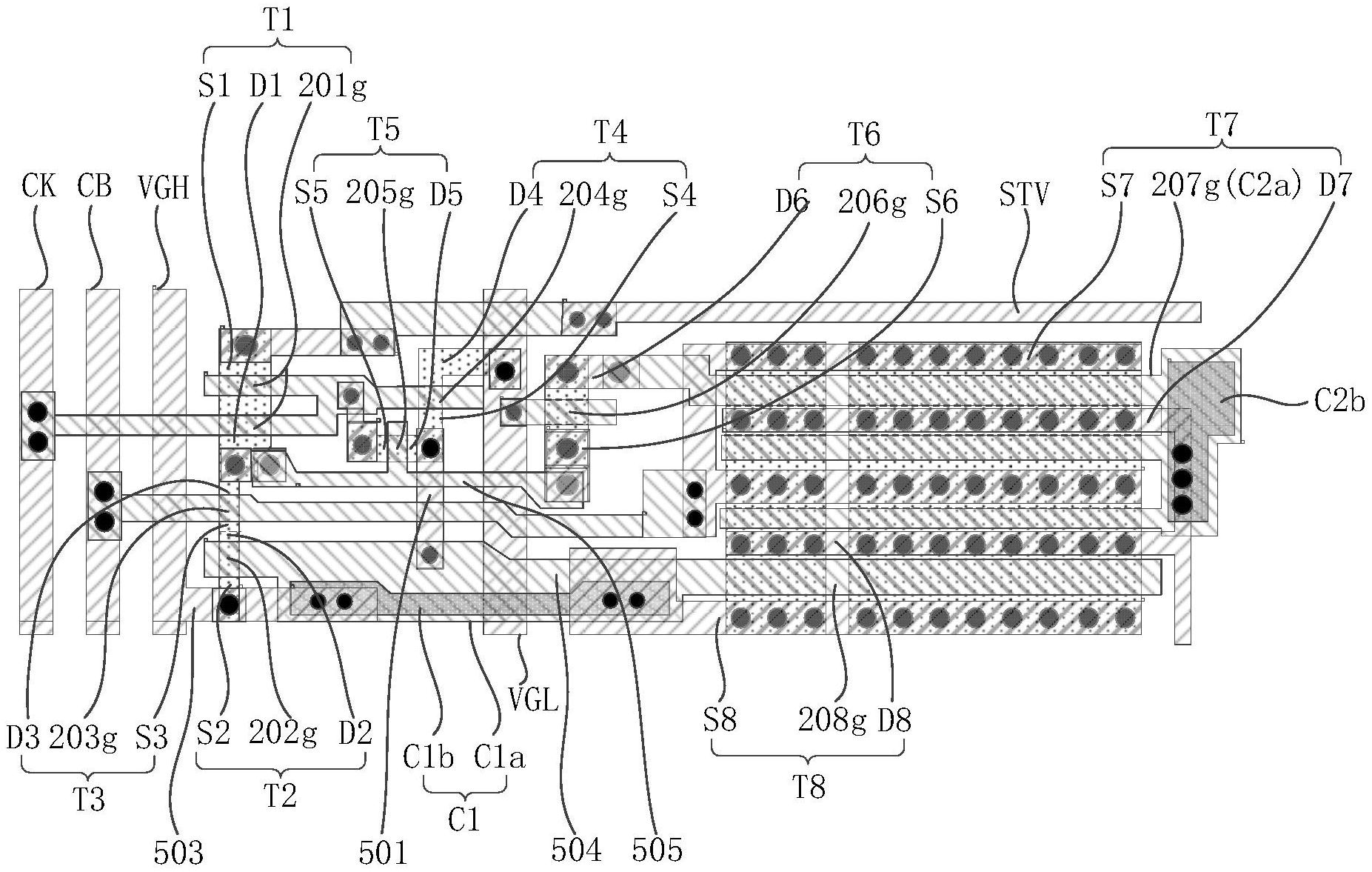 一种显示基板及其制作方法、显示装置。所述显示基板包括:基底,以及设置在所述基底上的栅极驱动电路;所述栅极驱动电路包括:帧起始信号线(STV)、时钟信号线(CK)、反相时钟信号线(CB)、第一电平信号线(VGH)、第二电平信号线(VGL)以及多个移位寄存器单元;多个晶体管至少包括第一晶体管(T1)、第二晶体管(T2)和第三晶体管(T3),第一晶体管(T1)的有源层、第二晶体管(T2)的有源层和第三晶体管(T3)的有源层由一个连续的第一半导体层(11)形成,第一半导体层(11)沿第一方向延伸;第一半导体层(11)包括与第一晶体管(T1)、第二晶体管(T2)和第三晶体管(T3)对应的至少三个沟道部分(110),以及设置在相邻的沟道部分(110)之间的导电部分(111),相邻的沟道部分(110)对应的多个晶体管之间通过对应的导电部分(111)耦接。