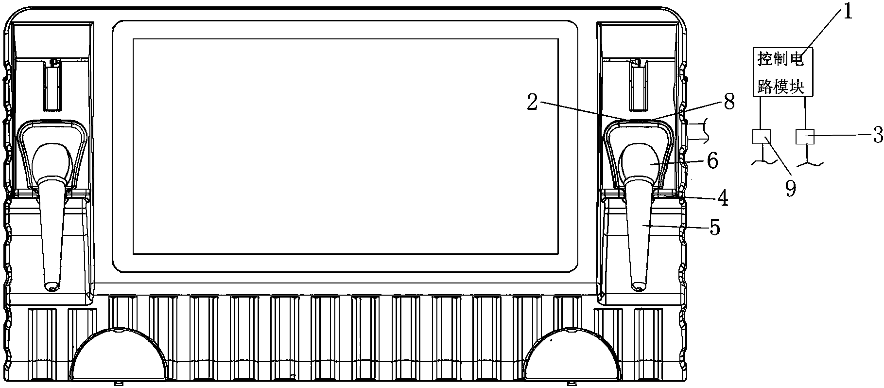 本实用新型公开一种友唱Mbar麦克风智能杀菌消毒系统,包括控制电路模块、紫外灯和消毒开关模块,紫外灯近距离安装于麦克风固定挂架上方以便正对麦克风网头进行照射,紫外灯和消毒开关模块与控制电路模块电连接,消毒开关模块和控制电路模块安装在友唱Mbar内,控制电路模块检测友唱Mbar是否处理于消费状态,并在友唱Mbar退出消费状态后控制消毒开关模块开启使紫外灯通电工作而在进入消费状态时控制消毒开关模块关闭使紫外灯断电。本实用新型可以实现在无人使用麦克风时对麦克风网头进行照射杀菌。